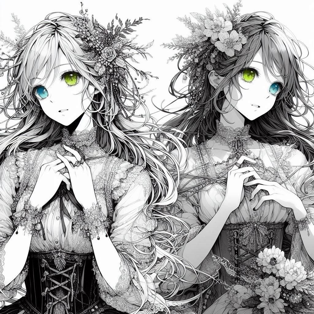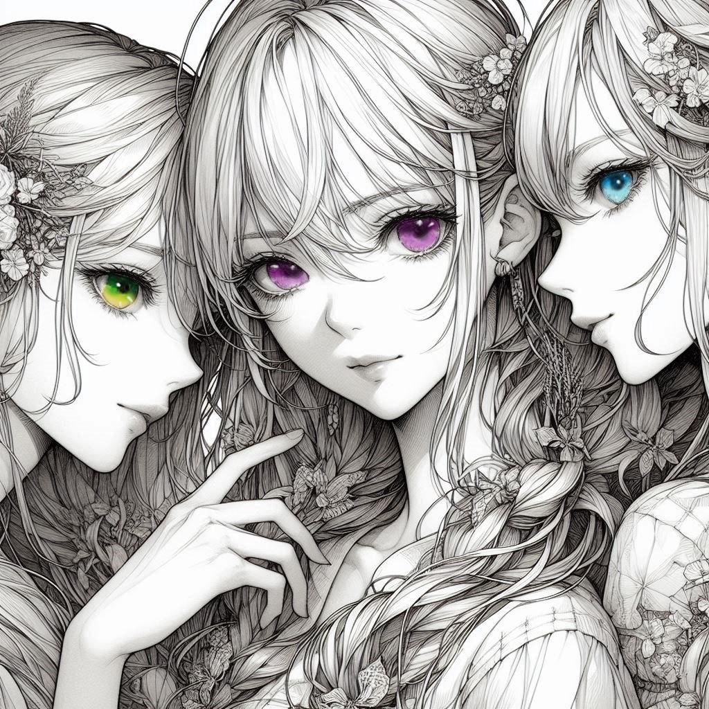 ・全部モノクロになってしまったので、瞳は全て色塗りして書き直してます。