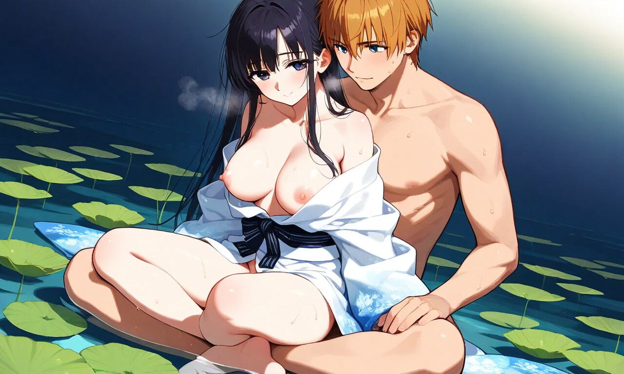 最後の一枚は(((sitting in lotus position,)))で強調しまくったら出てきた蓮の池。