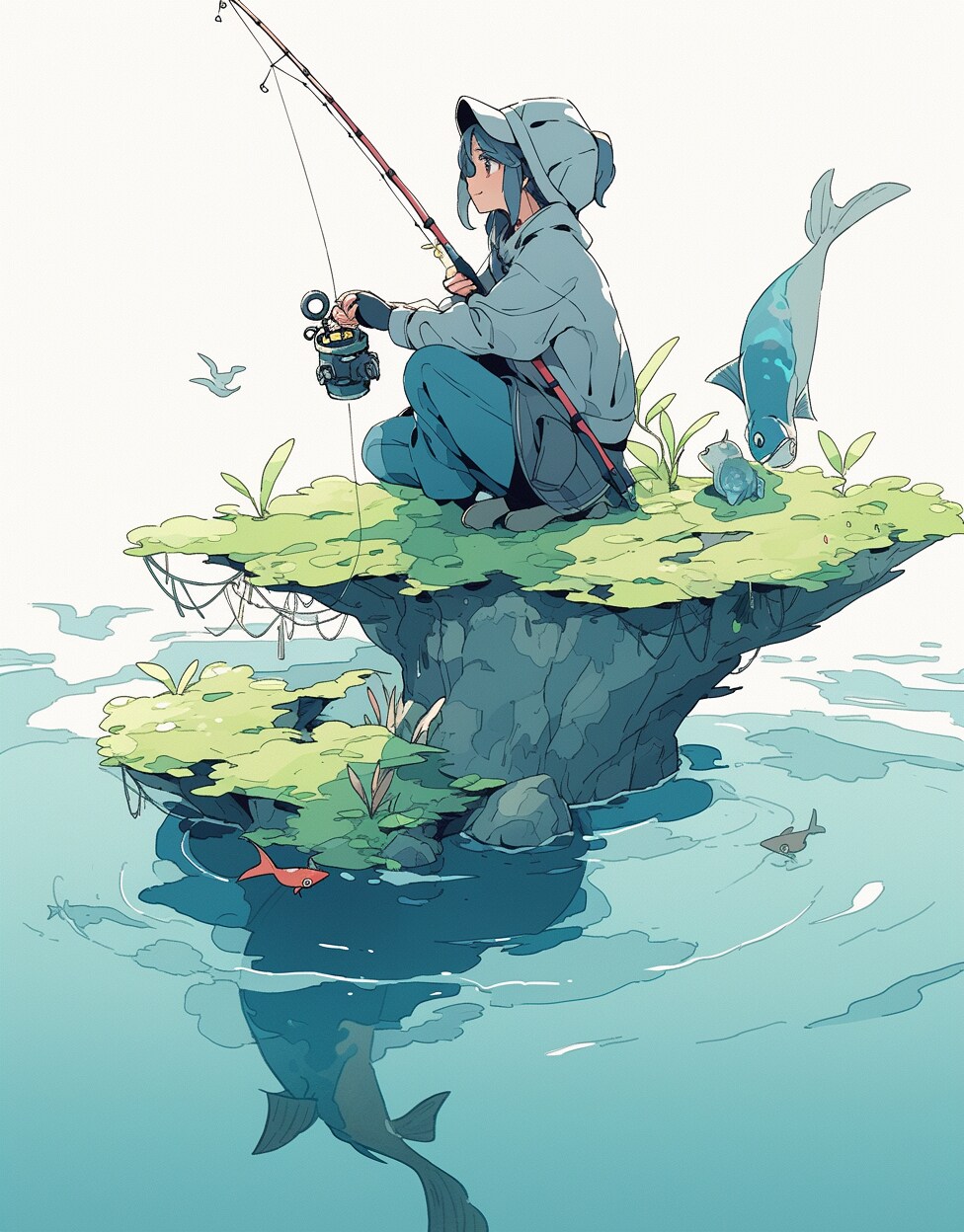 😴🐟夢の中で涼しく釣りをする少女3🐟😴✨🌈