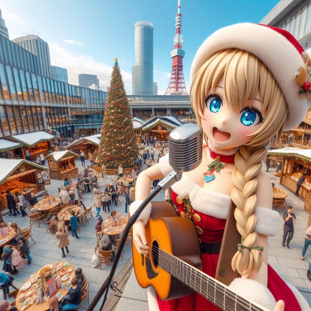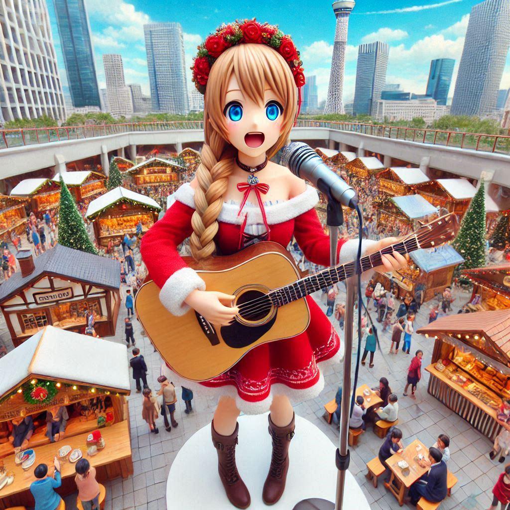 サンタの格好でギターを持ってうろつくお姉さんがいました。