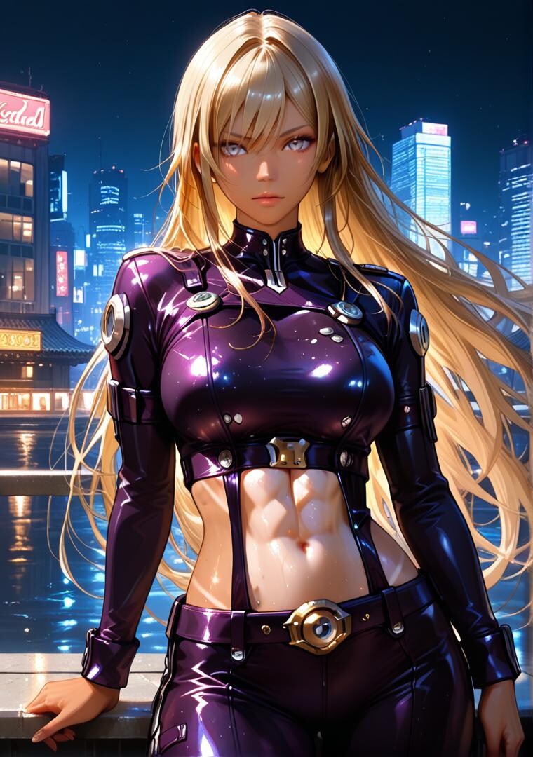 silver-gray rubberized catsuit, matte industrial texture, visible seams # シルバーグレーのラバーキャットスーツ、工業的なマット質感、縫い目が見えるデザイン