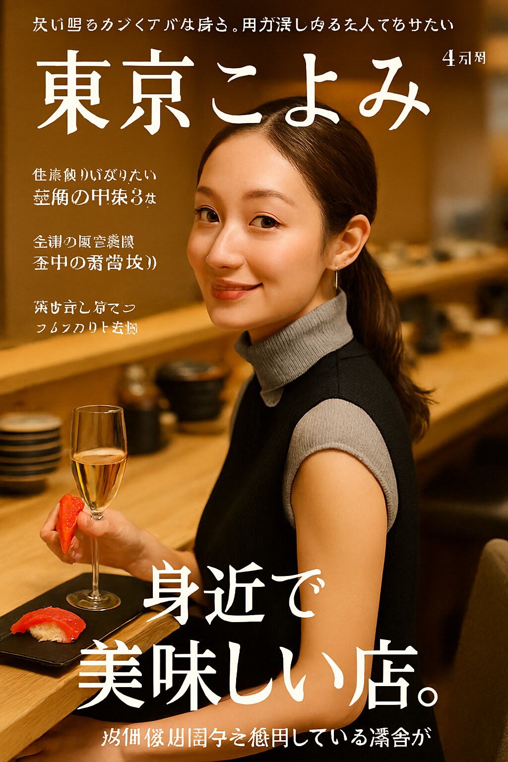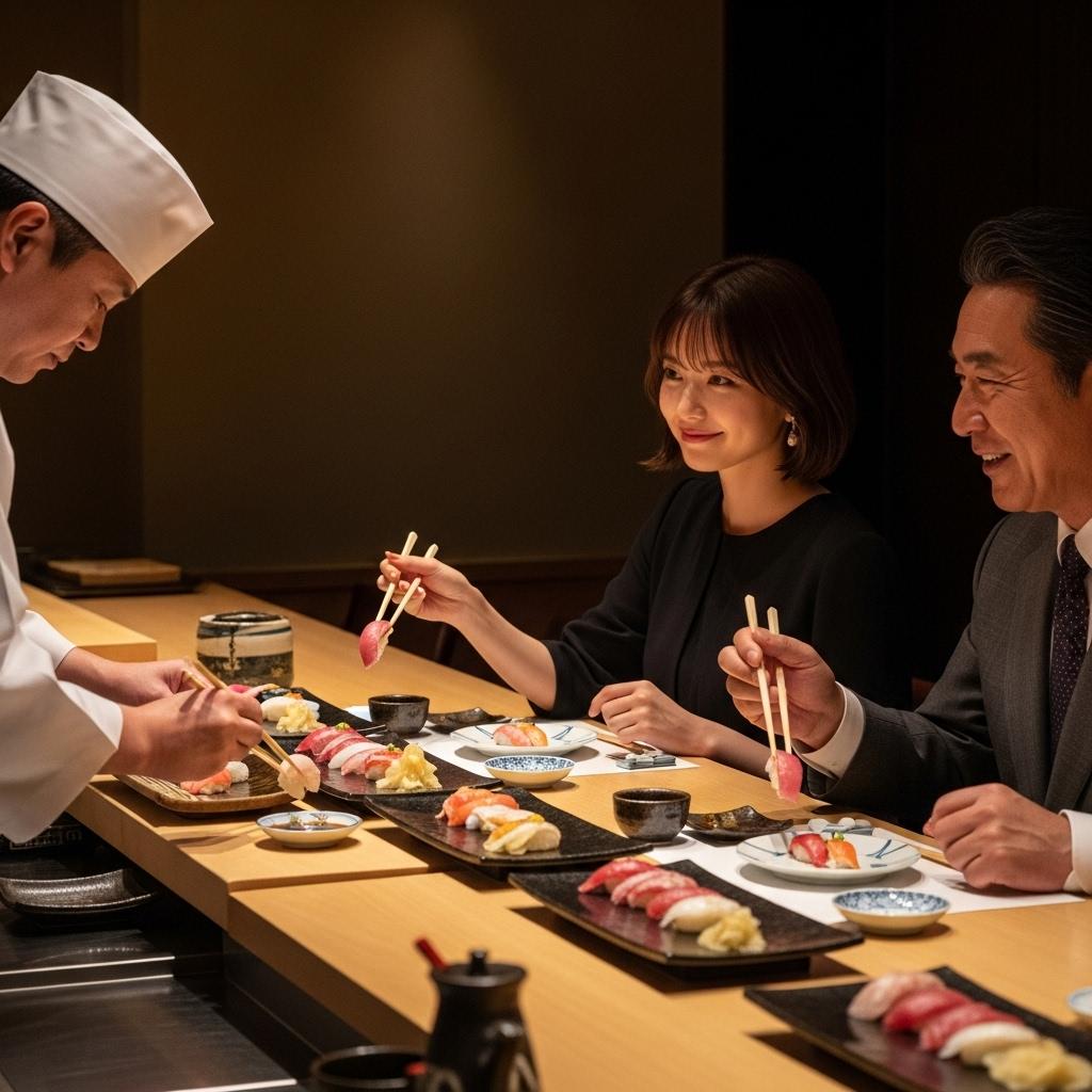 彼女は赤い漬けの握りをつまみながら、静かにワインを口に運んだ。 寿司と赤ワインの組み合わせは、少しだけ不思議で、少しだけ完璧だった。 「銀座の夜は、音が少ないね」と彼女は言った。 ぼくは頷いて、職人の包丁の音に耳を澄ませた。 それは、遠くの海の記憶みたいに、静かで、確かだった。