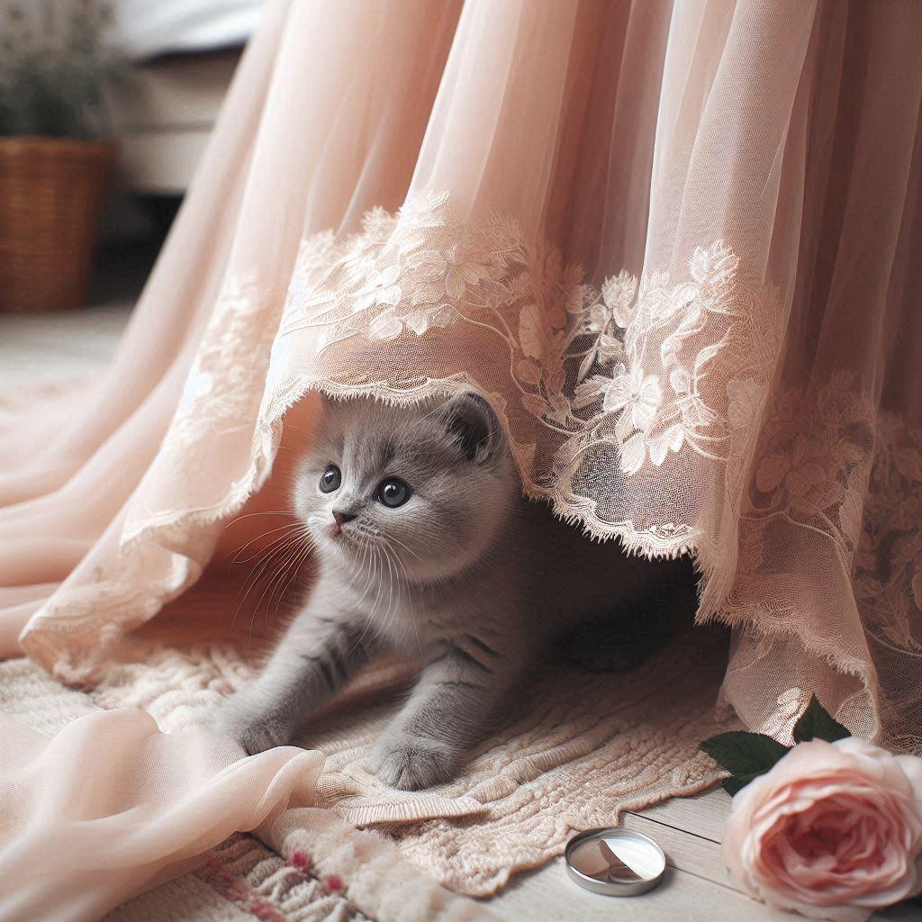 スカートで遊ぶ猫。