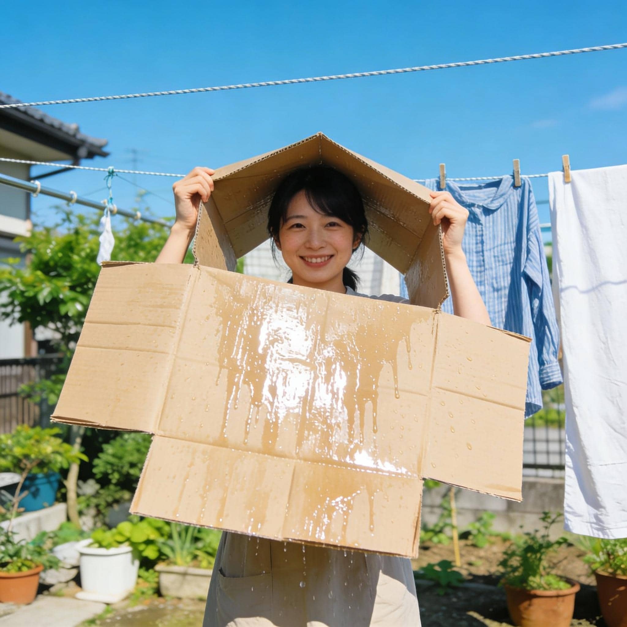 ダンボールを干す
