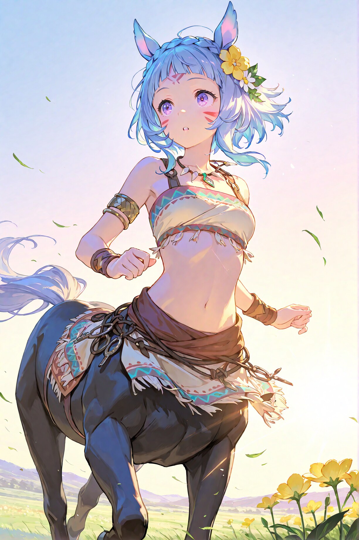 ・この企画に上がっている作品を眺めていくと、人間の体部分だけ人間の服でボトムスがスカート、あるいはファンタジー風作品だと人間の体部分だけ騎士鎧でがっちり守った形の作品も多いですね。まあ画像生成AIはケンタウロスの絵よりもはるかに多くの量の人間の絵を機械学習していますから、自然とそうなってしまうのかなと。