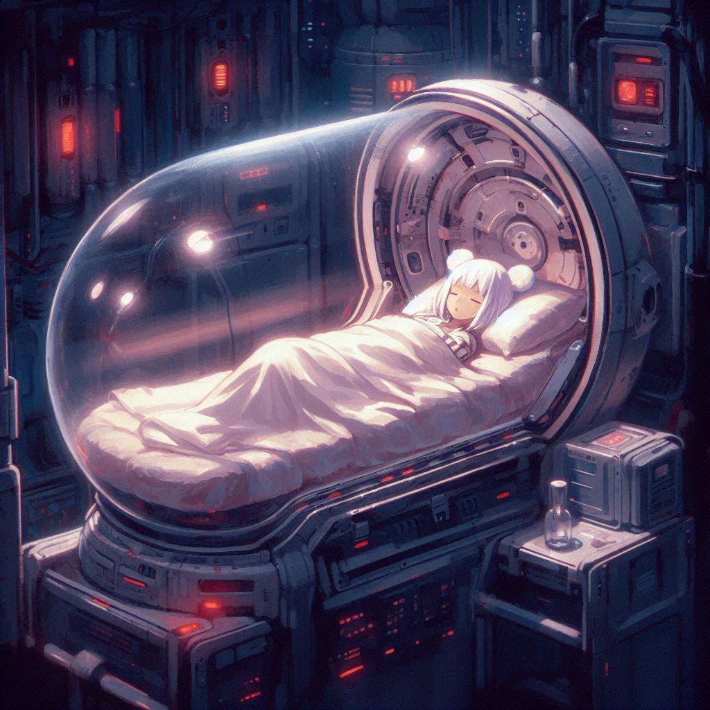 地下室には大きなカプセルがあり、そこには少女が一人、横たわっています。