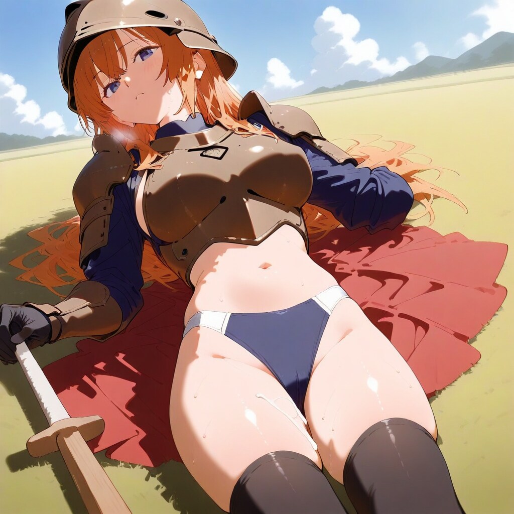 「……アーマースカート盗まれた……。誰が盗んだんだよ。ブーメランパンツ丸見え状態じゃねぇかチクショウ……」