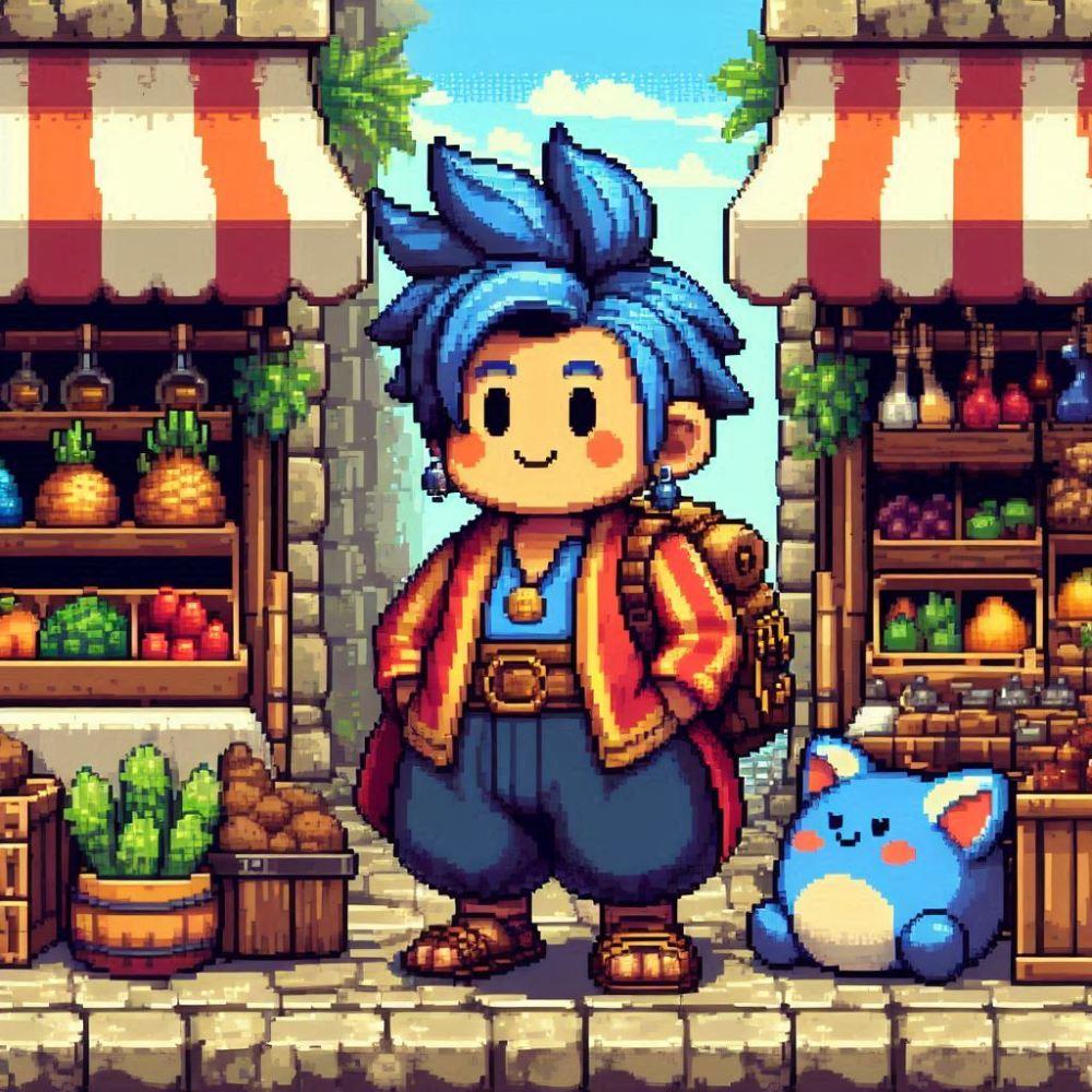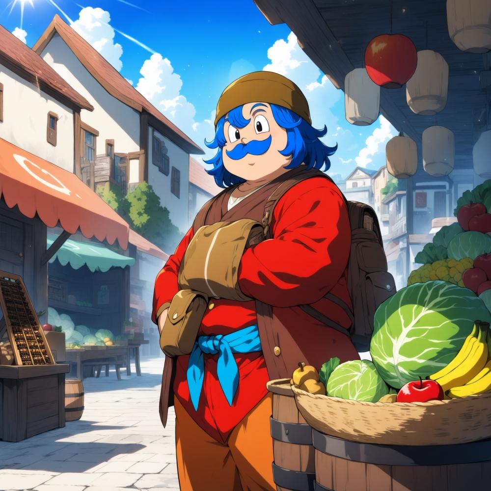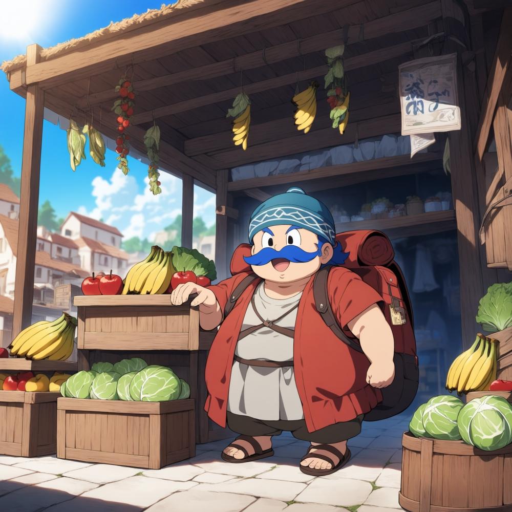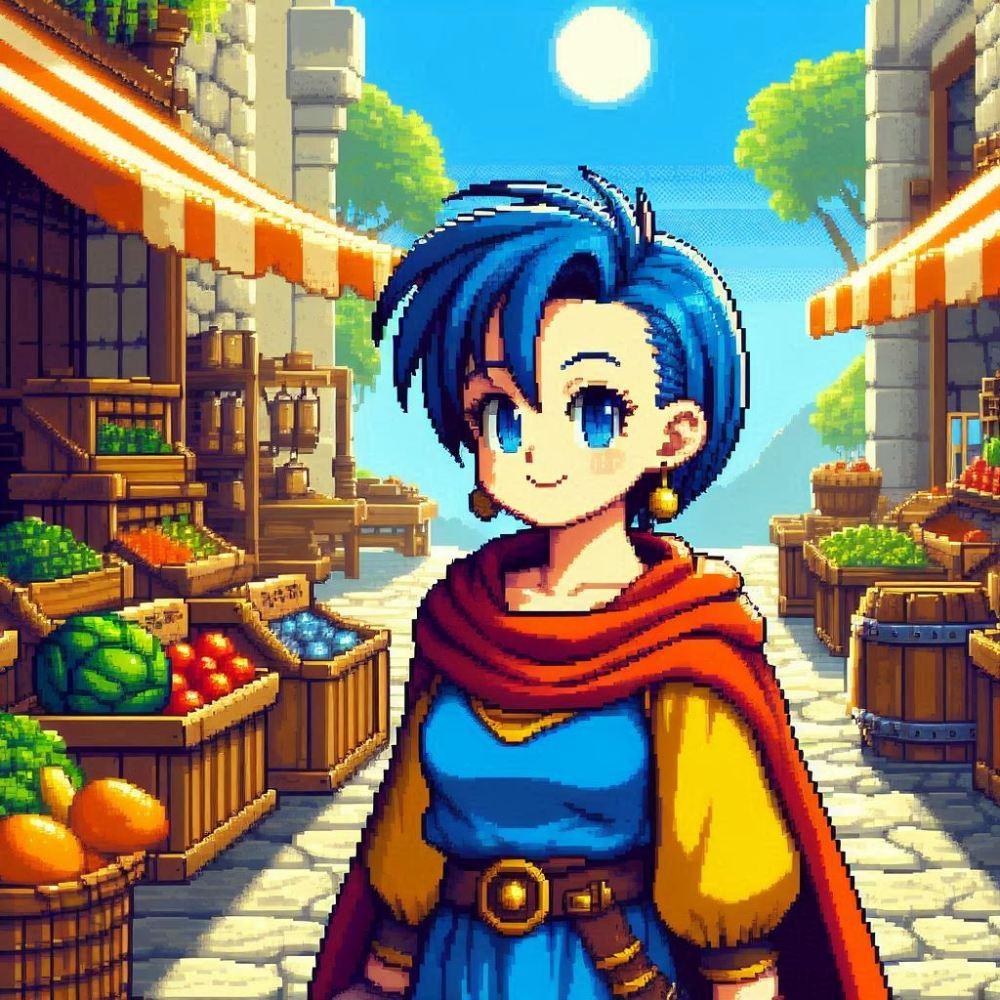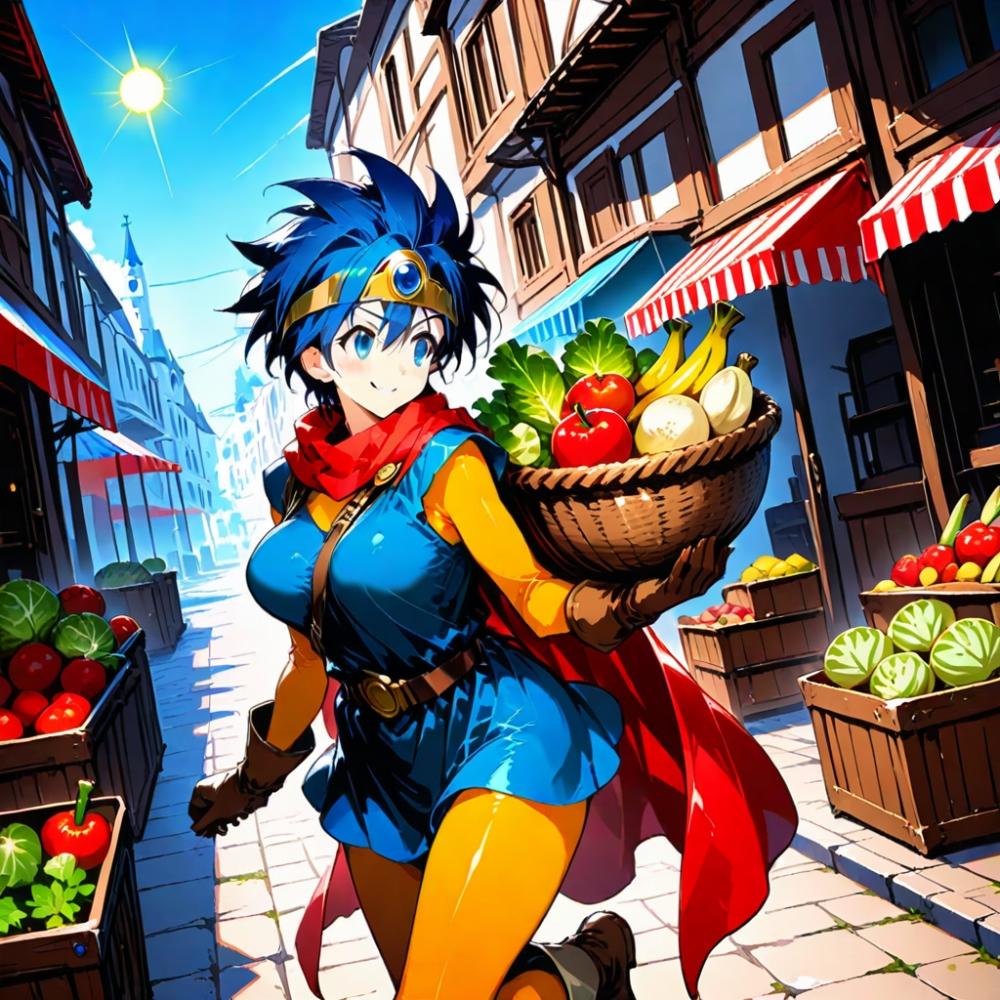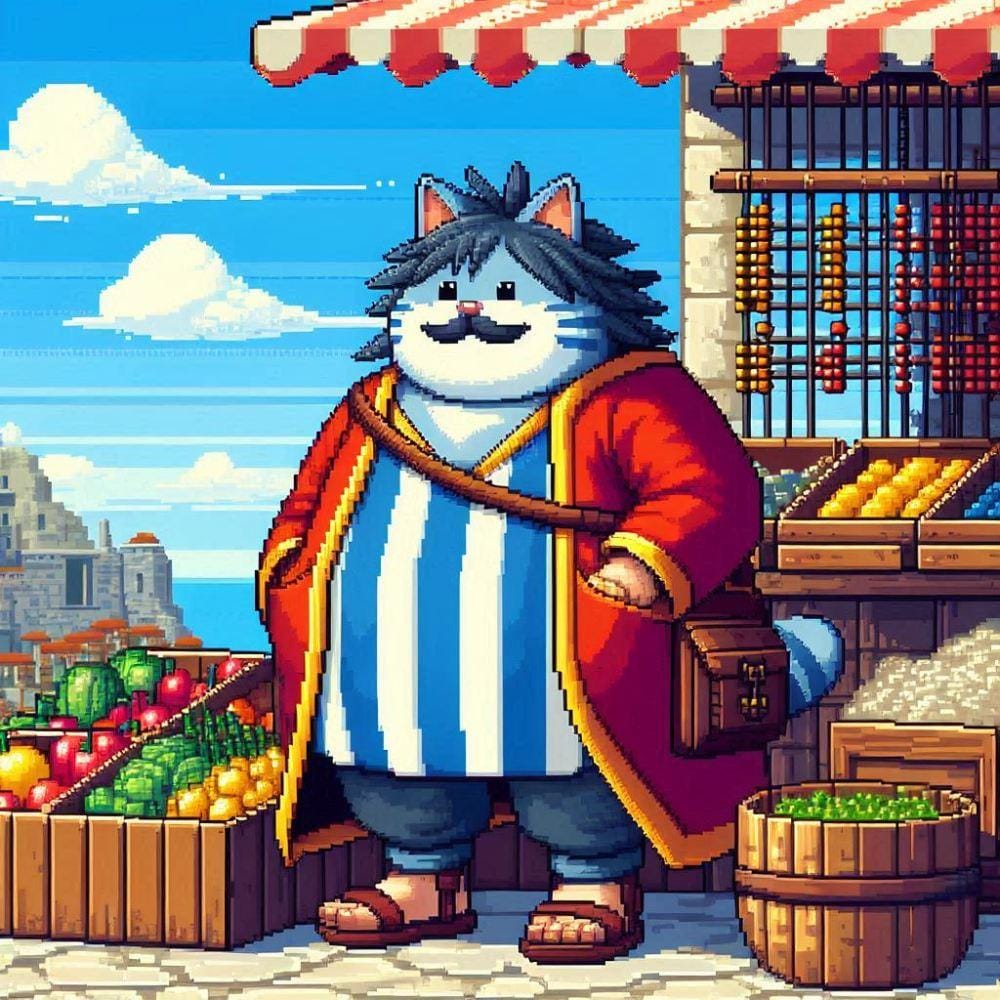 油絵アニメドット絵風古代ギリシャ市場で買い物勇者コスプレ人妻23歳&商人