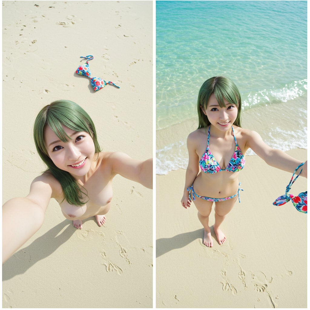 ONOFFビキニ水着の着衣脱衣の比較画像#1