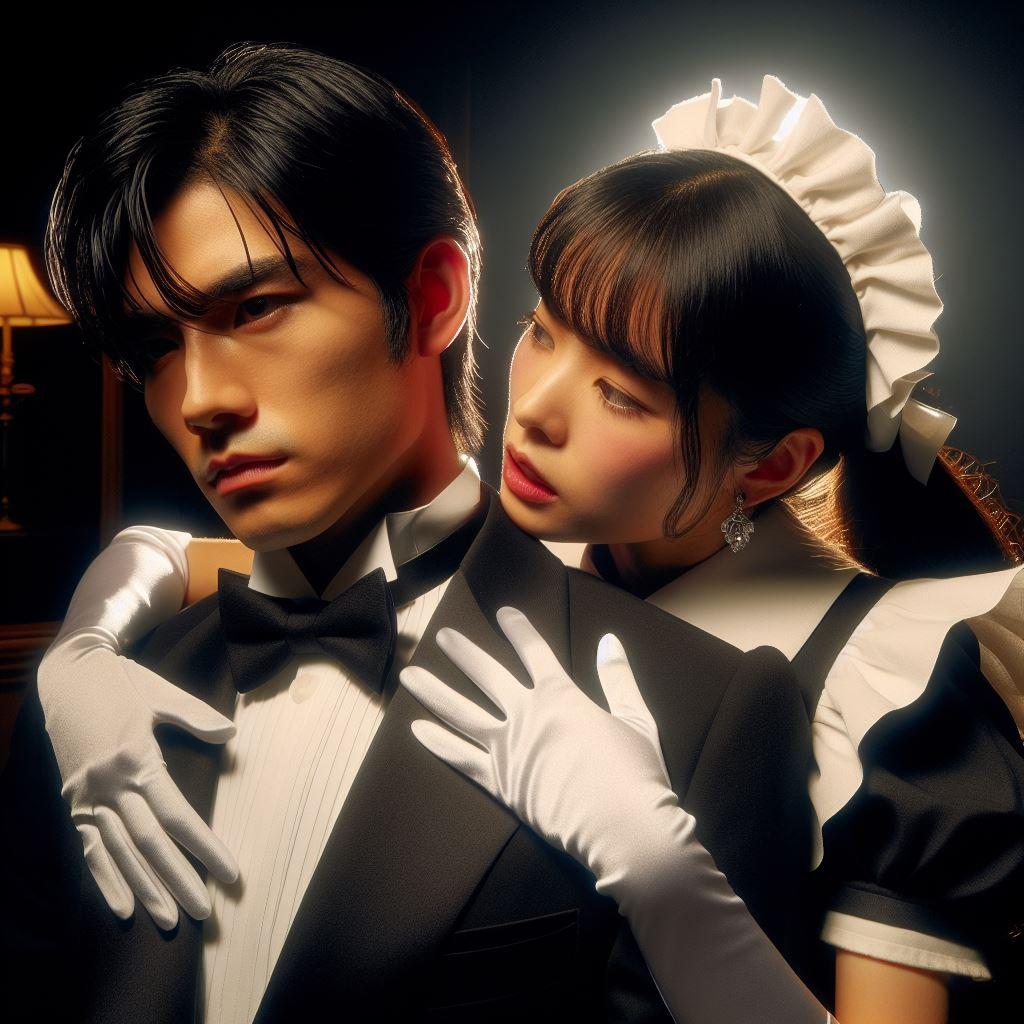 現代から遡ること数十年前のお屋敷内、才気煥発な若いメイドが新人執事を後ろから力強く抱きすくめて問う。