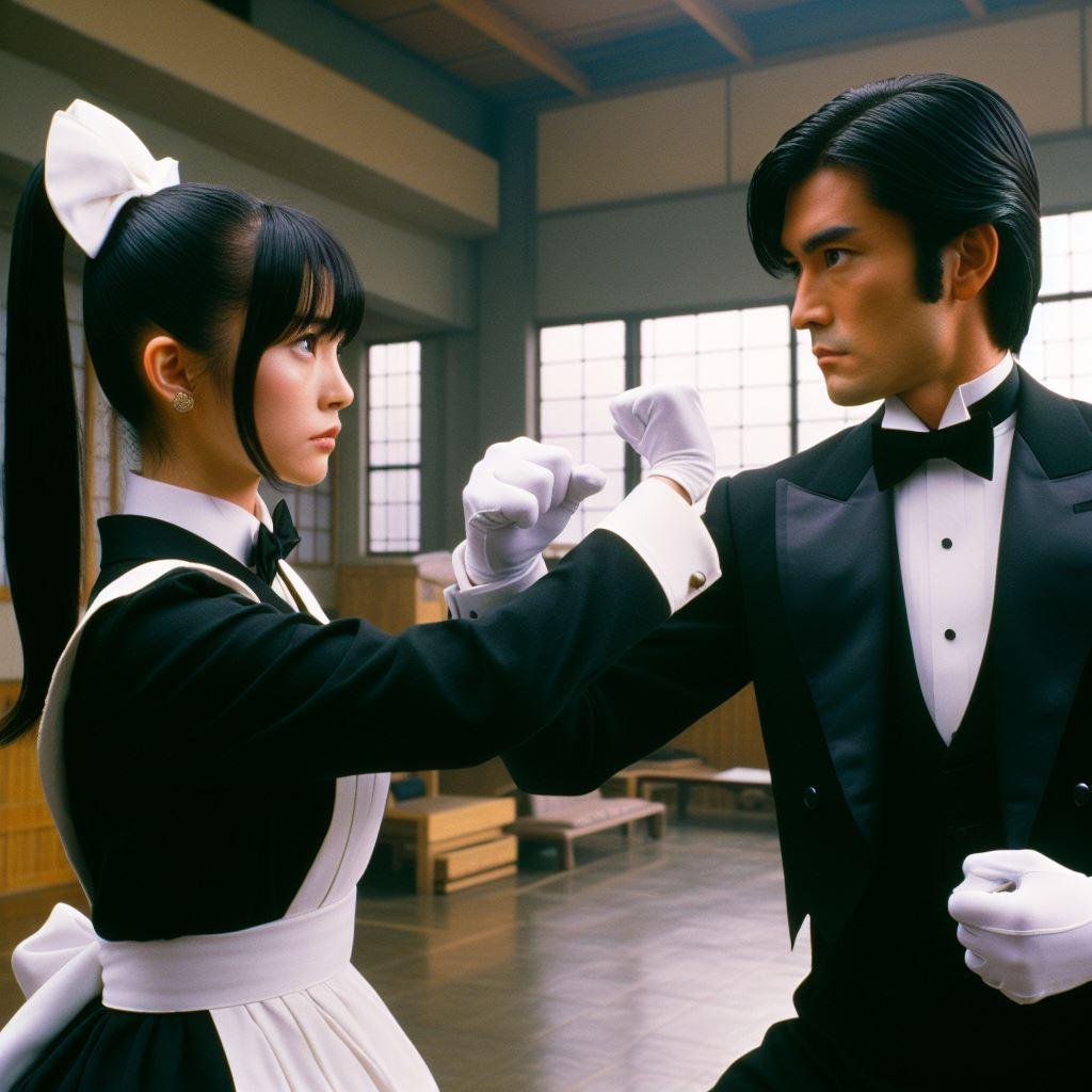 若い執事の脳裏に、件のメイドに道場で散々に打ち負かされた日々の記憶が蘇る。