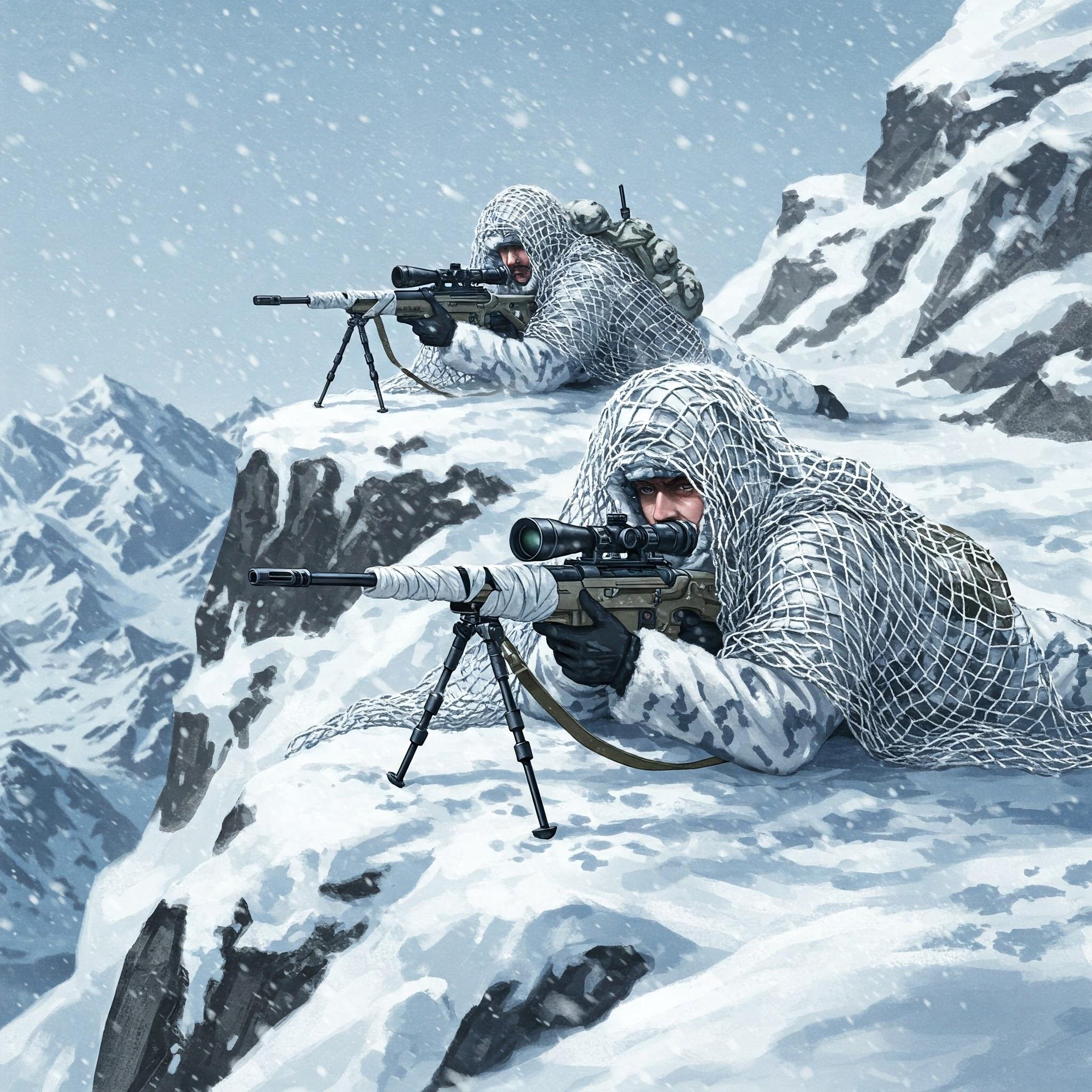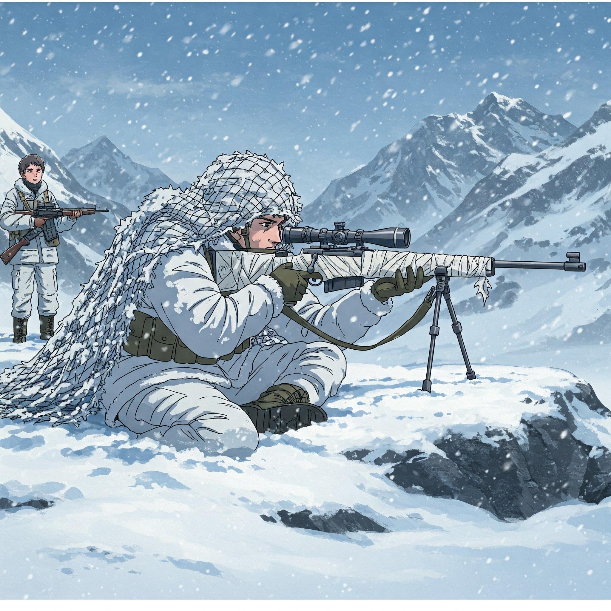 本当は、険しい冬山の峰に冬季迷彩のギリースーツで、うつ伏せ状態としたかったのですが、