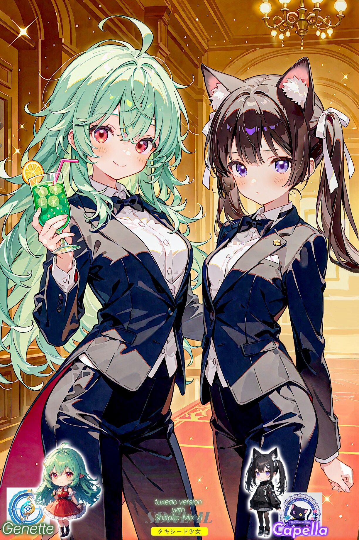 女の子キャラクター全員タキシードVerで参加じゃ~ということで、冬フェス2025でも突発DJをしていたジュネットとカペラ、異色の二人で創りました。