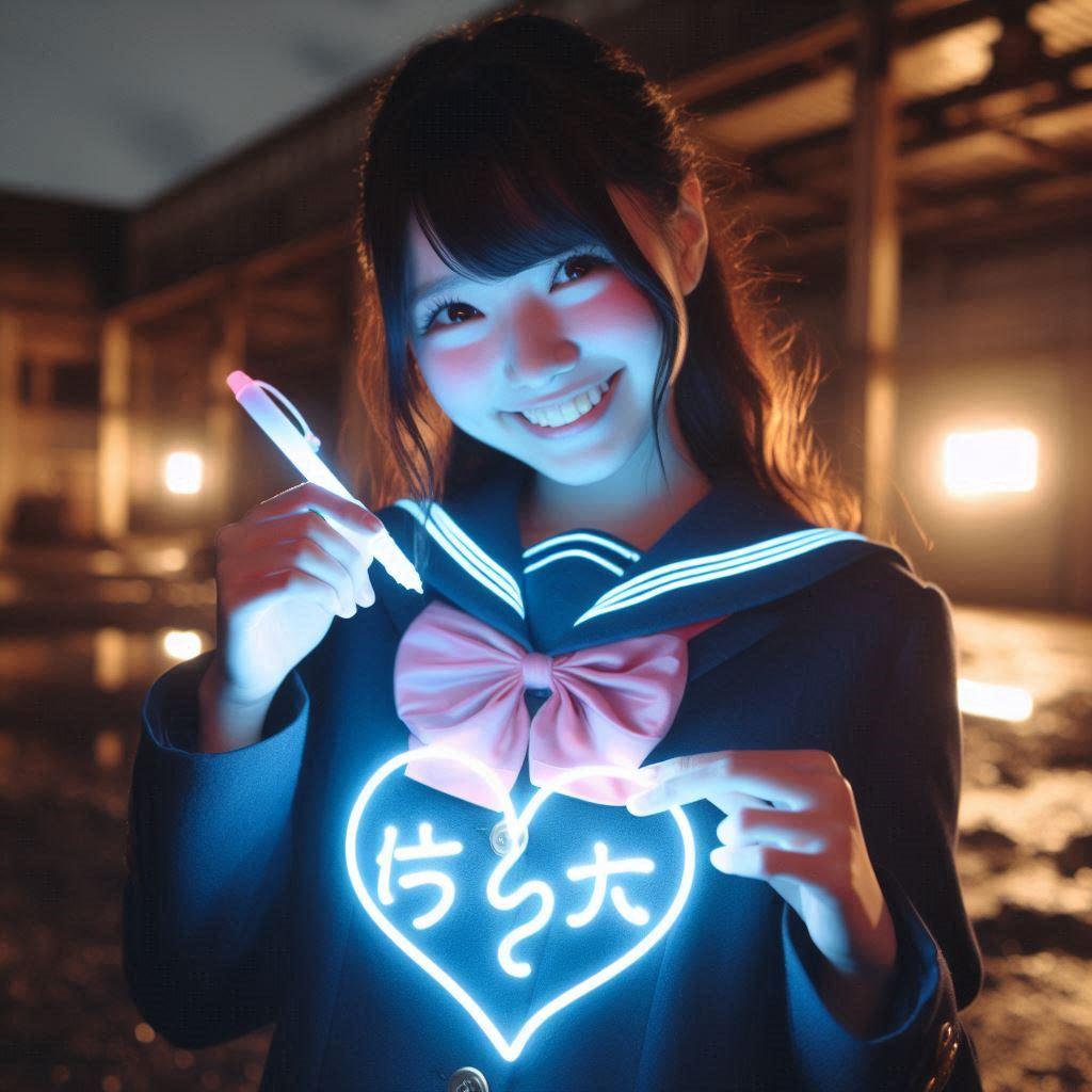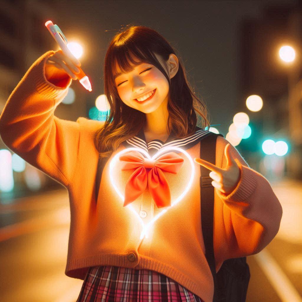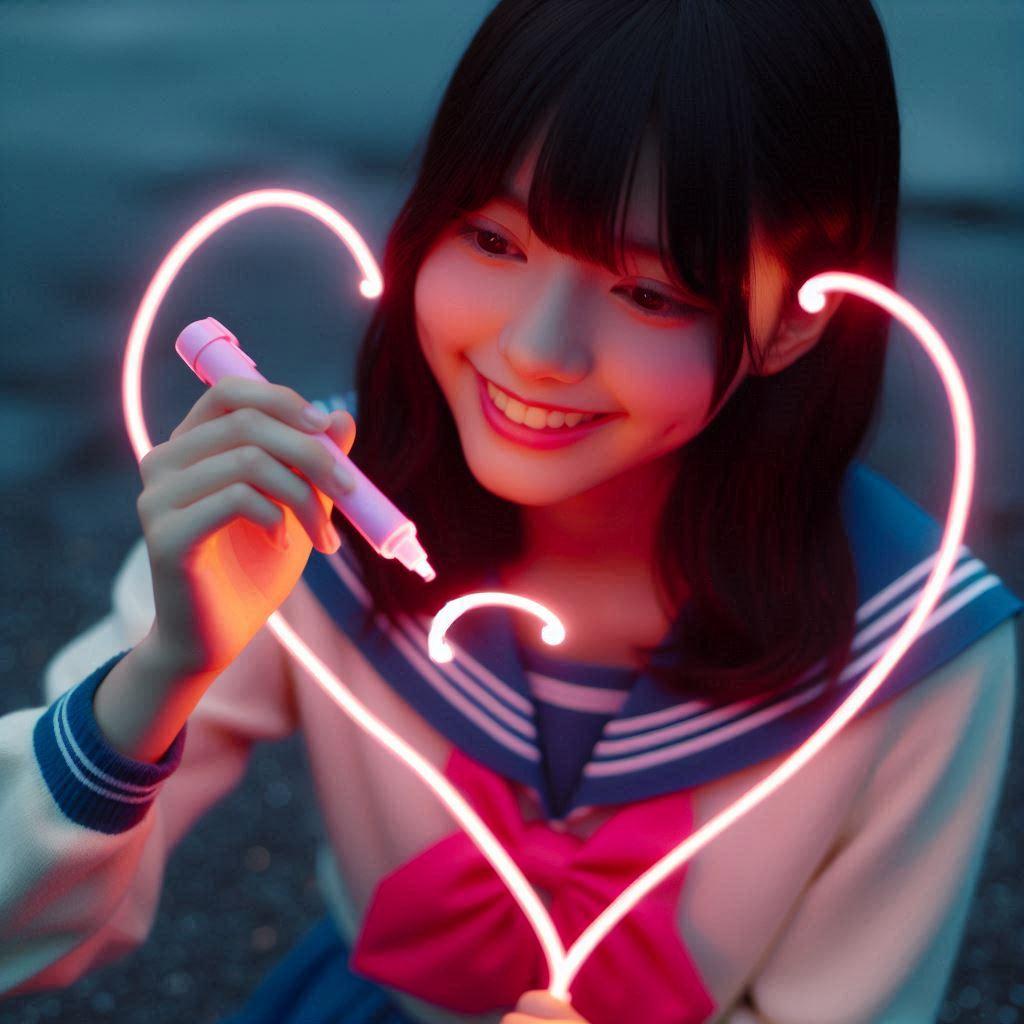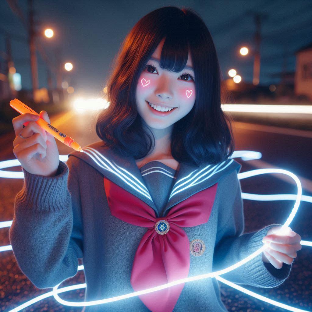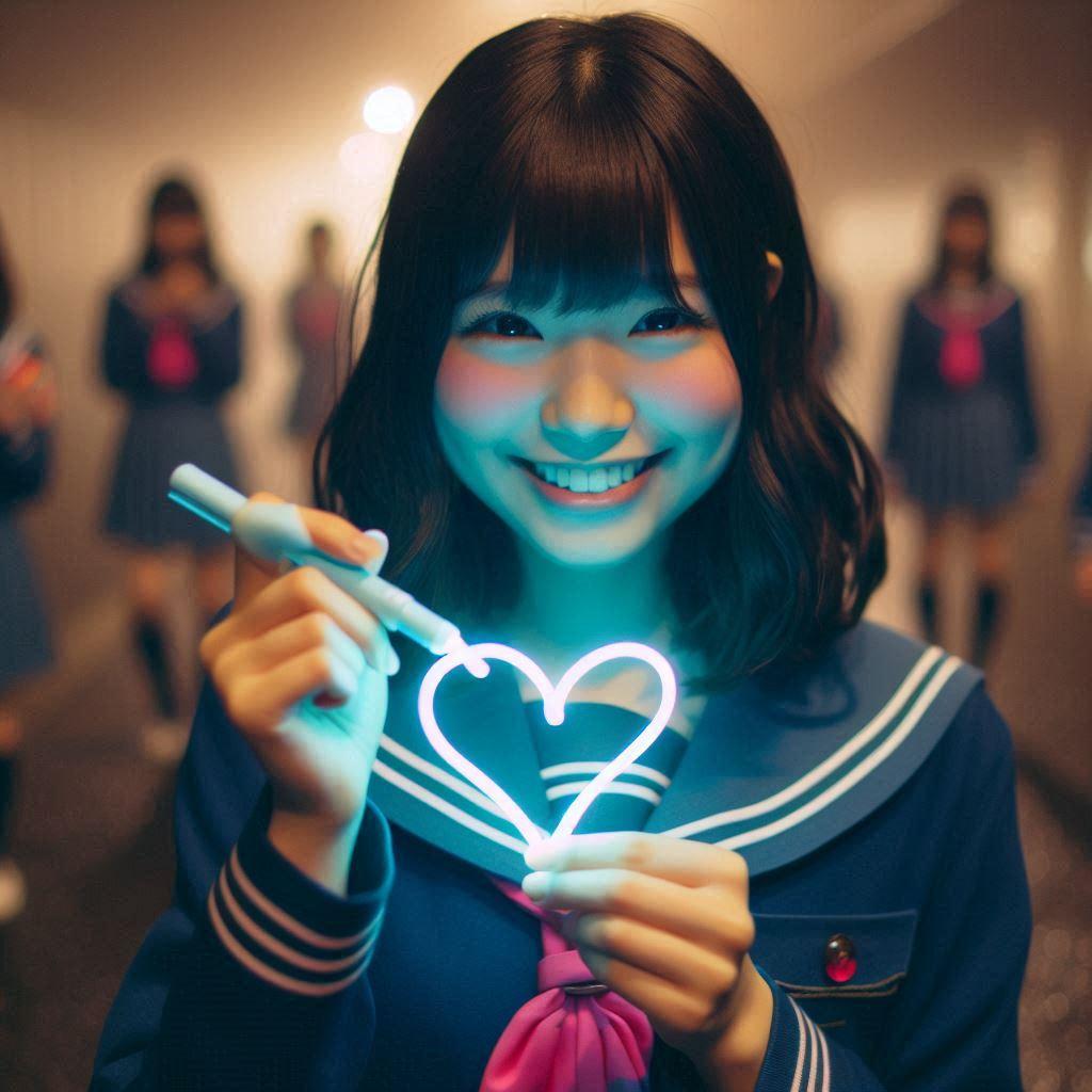 空気に書けるネオンのペンを使ってらくがきをする女の子たち