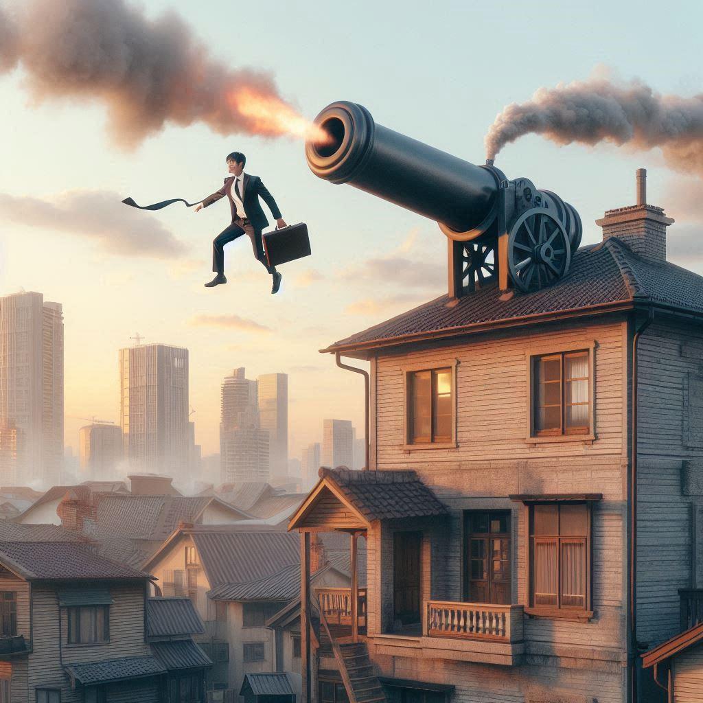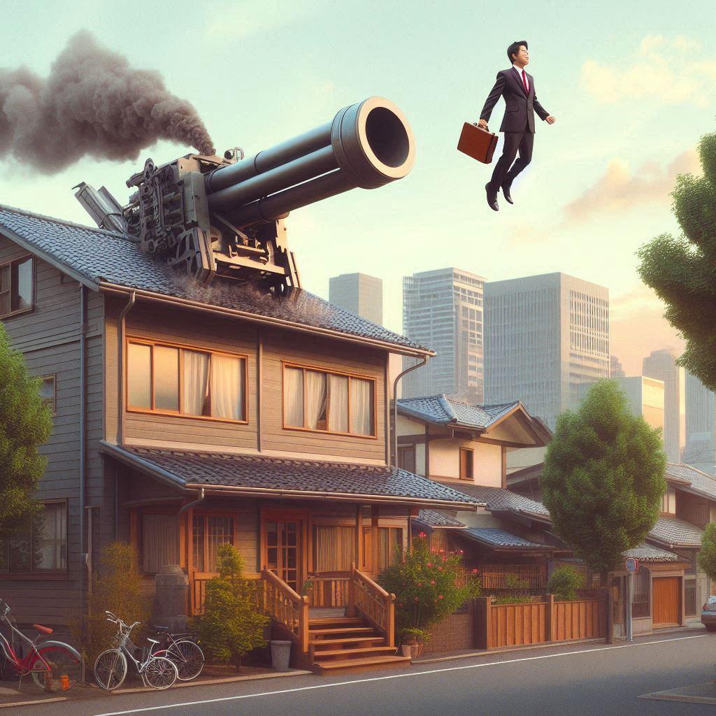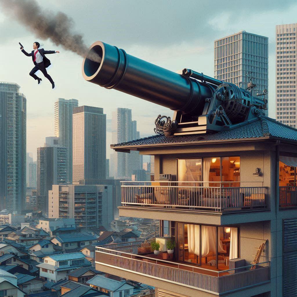 だけどどこでもドアは未来すぎるので近未来で現実的に考えたら大砲だな!と。