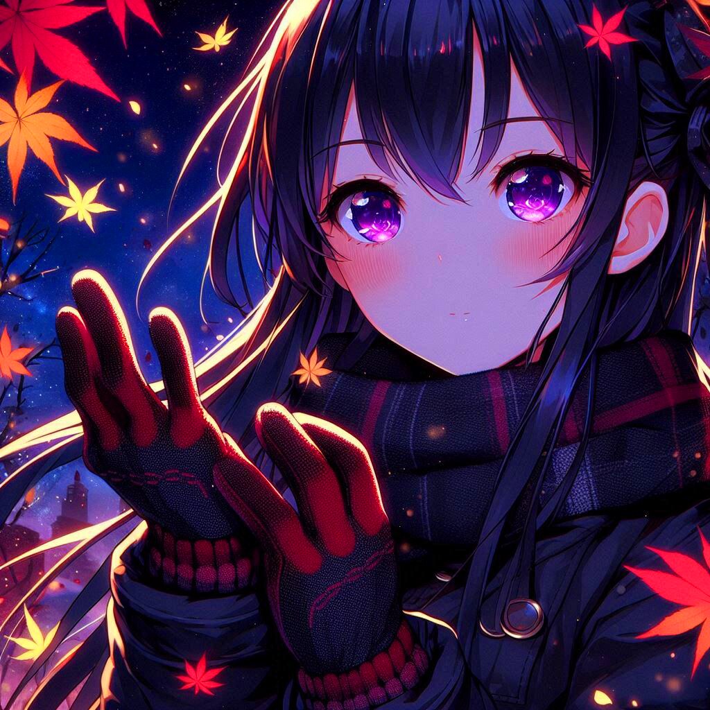 秋!ということで、紅葉と組み合わせてみました。また秋で手袋するなら夜かな?と思い、夜にしてみました。