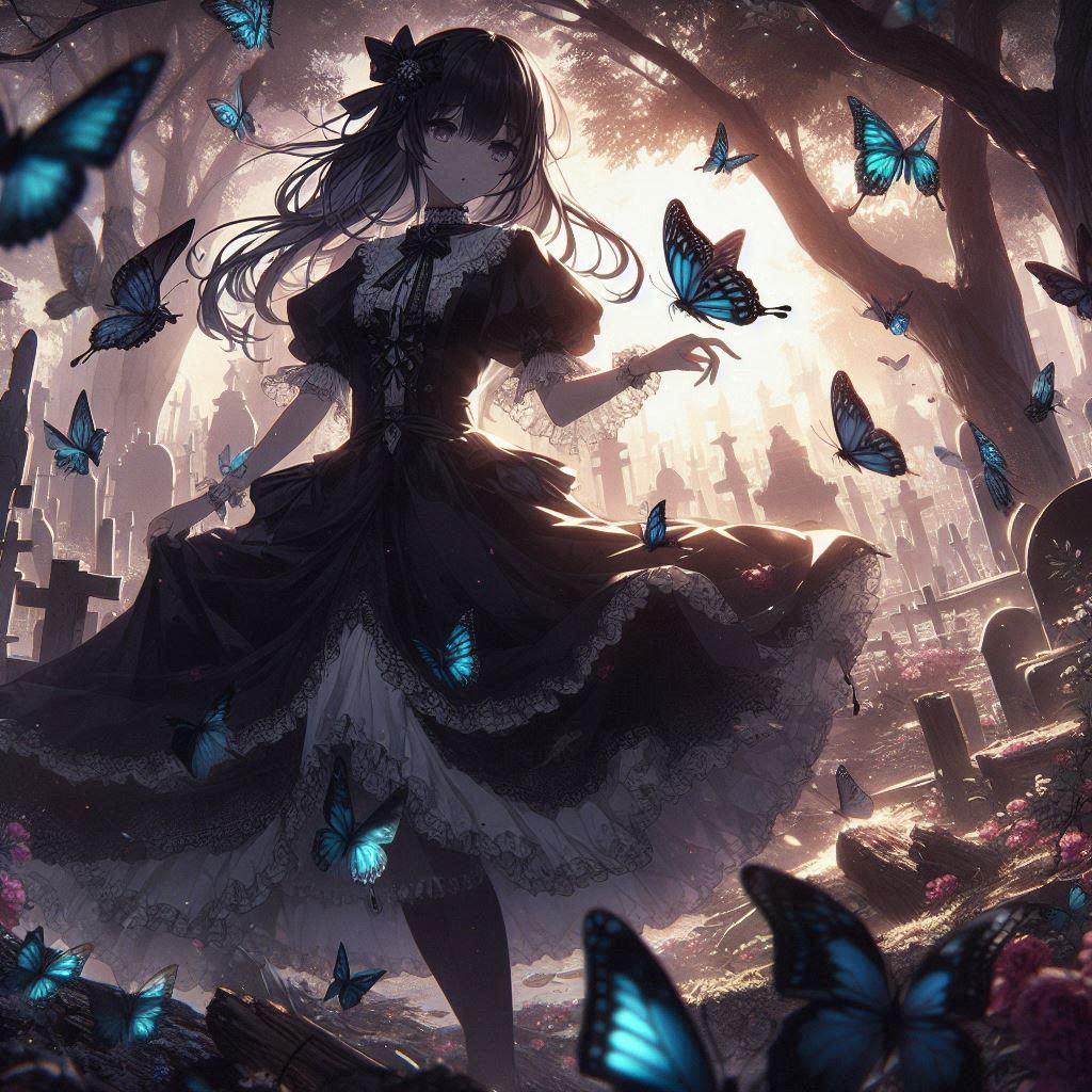 オリジナル作品は呪文的にメインキャラが死〇だったので?💦・・そこはかわいい女の子にアレンジし、Dalle向きな呪文に改変して生成させて頂きました♪(公開してくださった方、感謝♪)