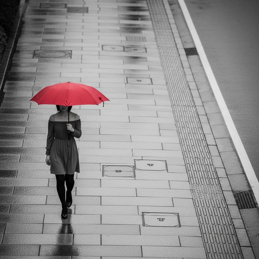 雨の歩道を歩いて・・・