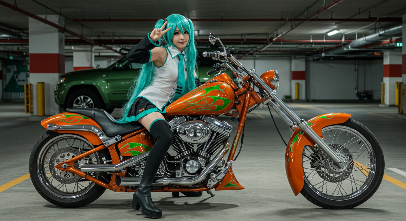 初音ミクコスプレイヤーとハーレーダビッドソン