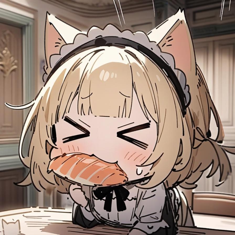 🐱今日の私は猫と言い張る系メイドちゃん、おジャンボサーモンを食す🐱