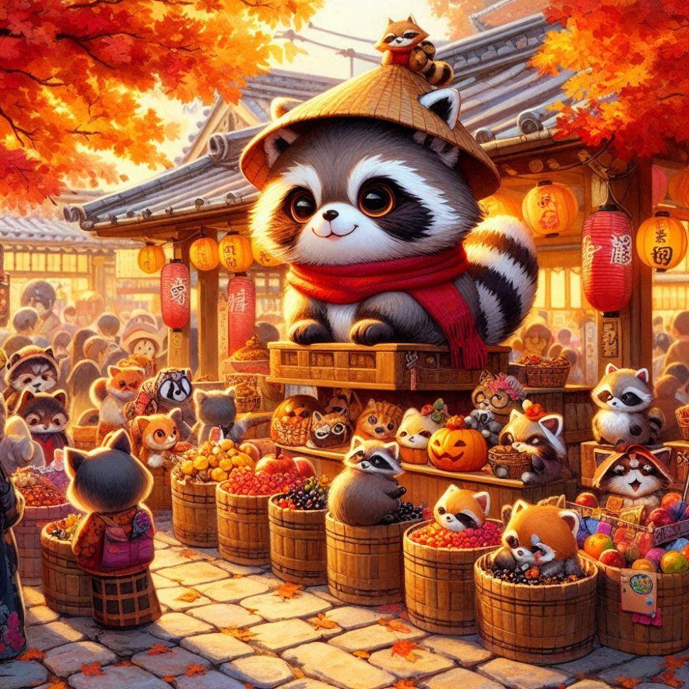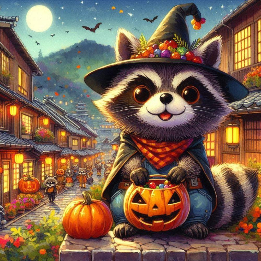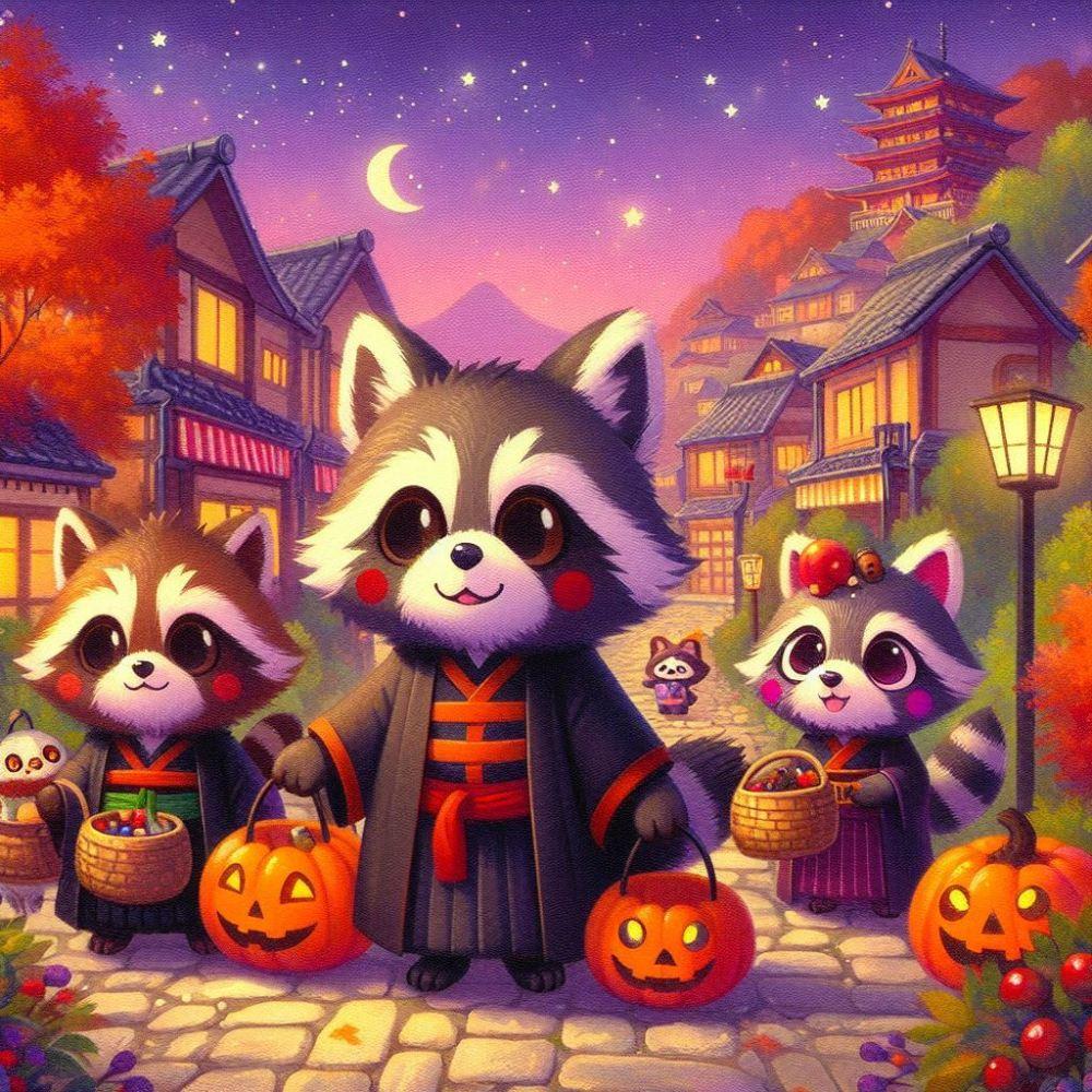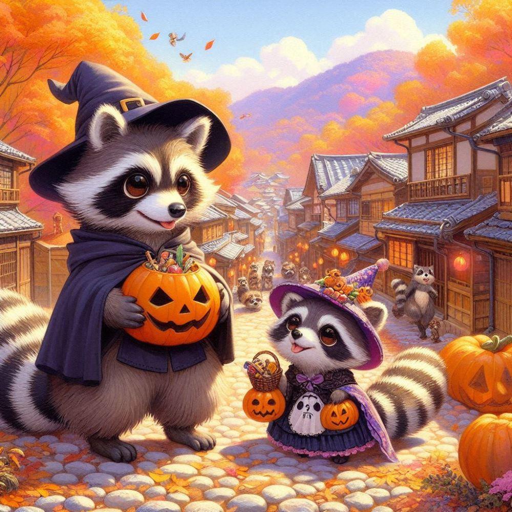 アクリルファンタジー、ハロウィンコスプレパーティーをするタヌキ