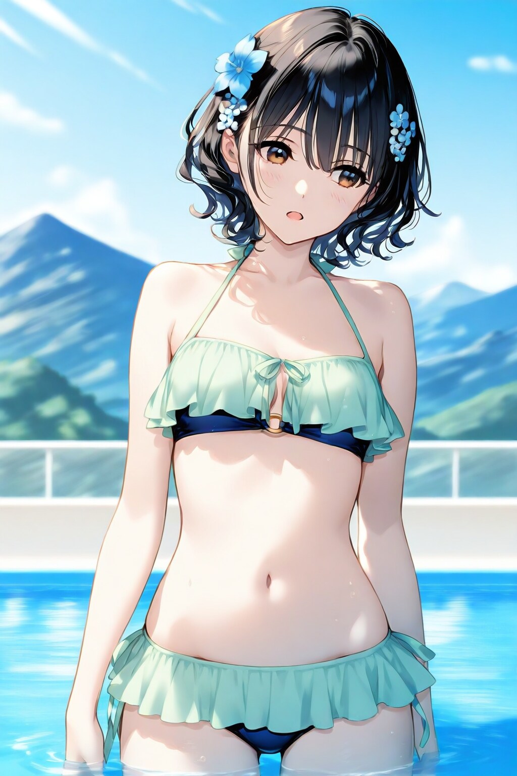 黒髪ショートといえばWAVEちゃんが定番……ですが、そろそろ新シリーズも始めたいのでここでビキニ水着のアンコール。