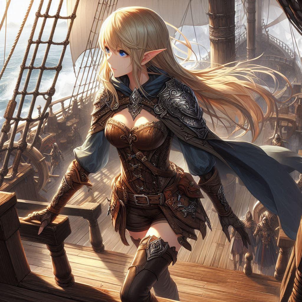 風が彼女の金色の髪を揺らし、船の帆を大きく膨らませる。