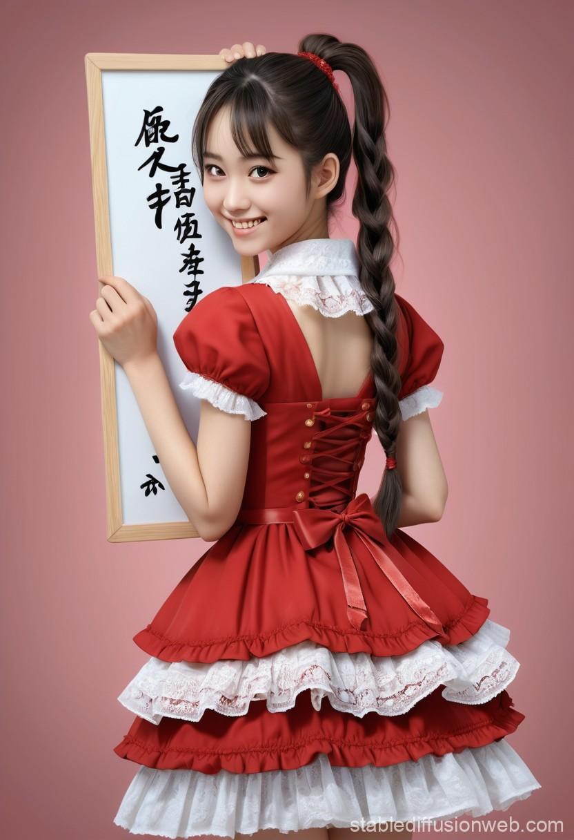 手に持っている板に「2」と表示させたかったのですが、漢字っぽいものが書かれた板になってしまいました。プロンプトで Japanese girl と書いたので、Japanese の部分が文字に影響したのかなと思いました。