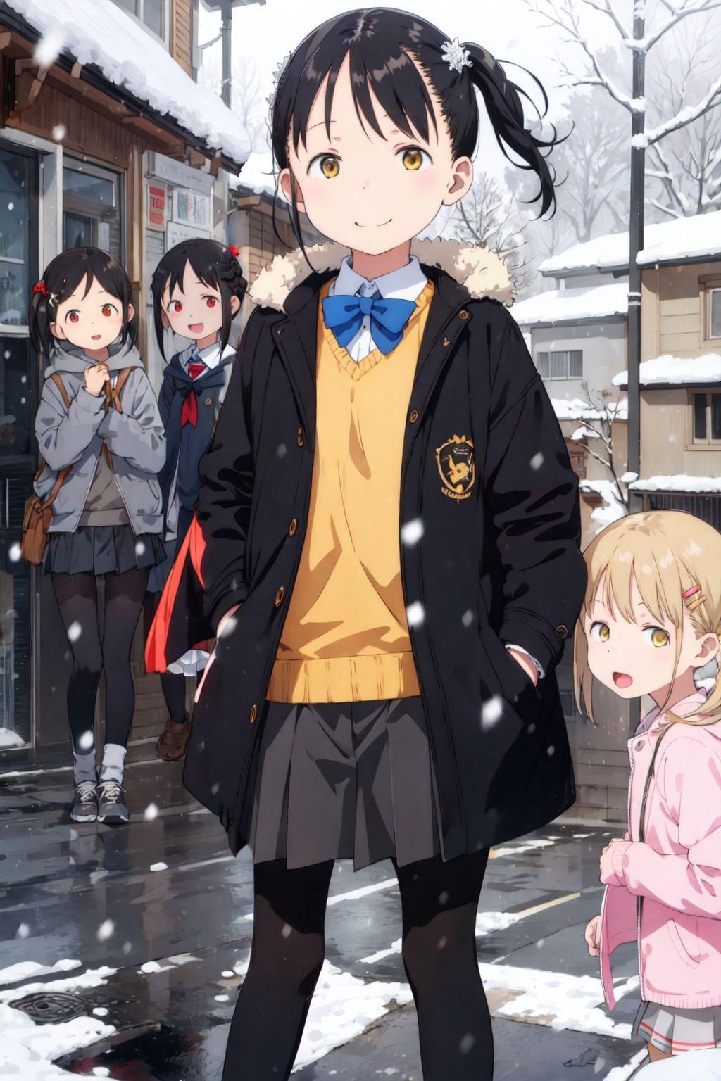 結衣: 「いやいや、遅刻するって! 雪だるま作ってる間にチャイム鳴るよ。優子のそういうとこほんと困る…。それに寒すぎるし。」
