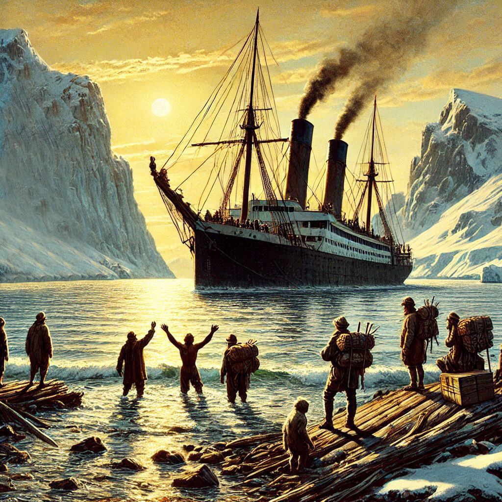 上陸してからも雪原をボートを曳いて安全なところへと移動し、極寒の冬を超す。
