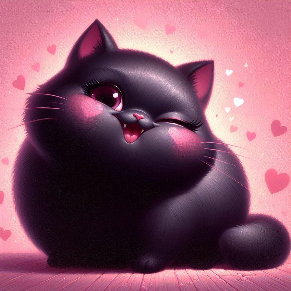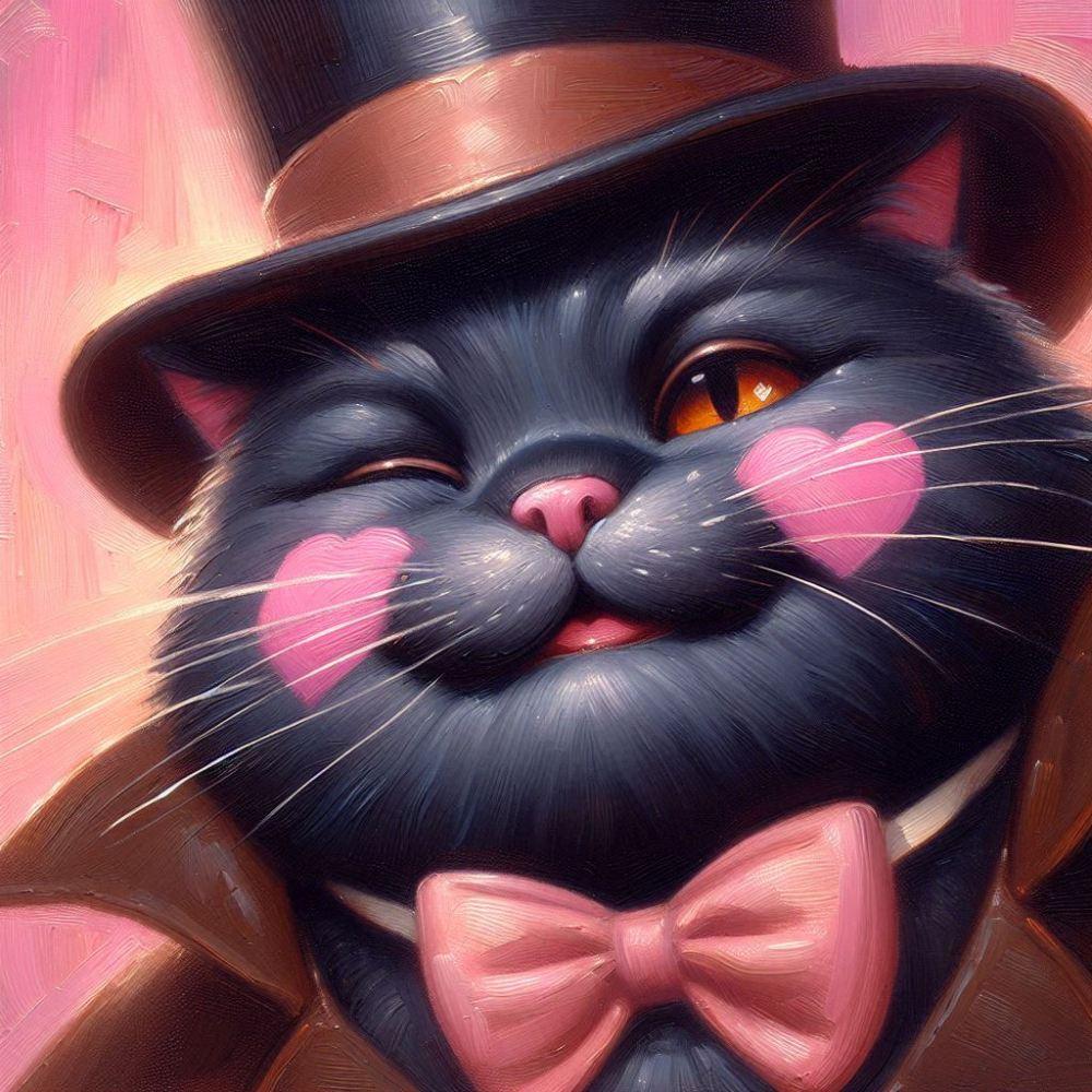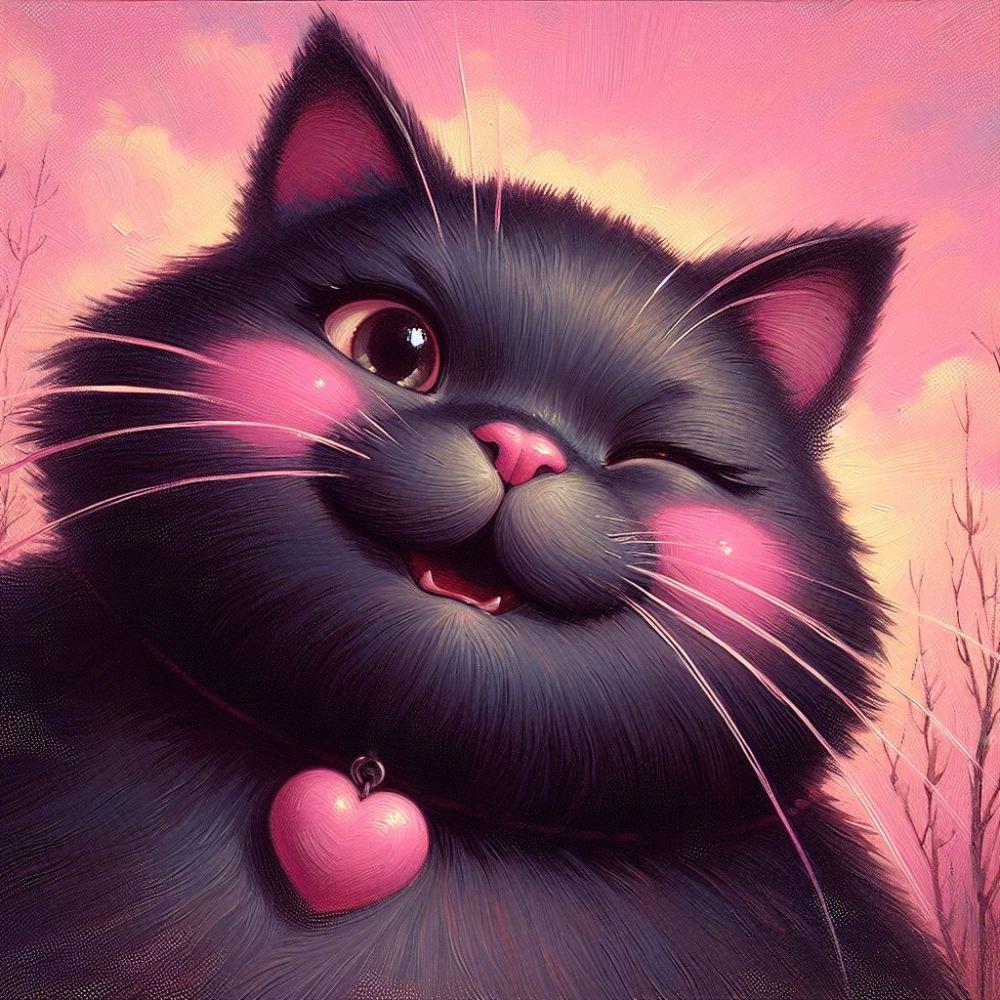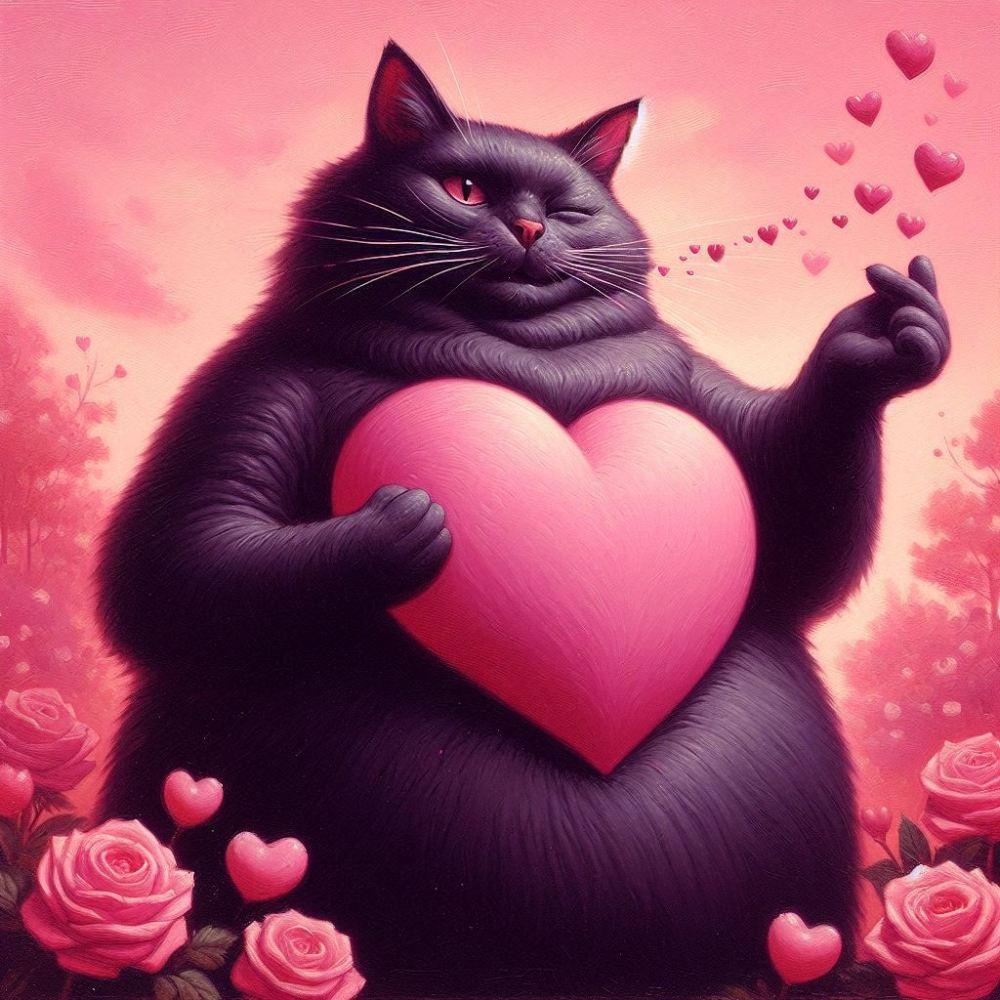 油絵ファンタジー、ほっぺハート黒猫