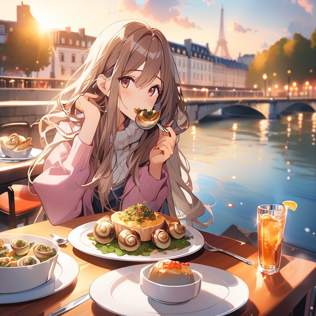 「セーヌ河沿いのレストランでエスカルゴを食べる」