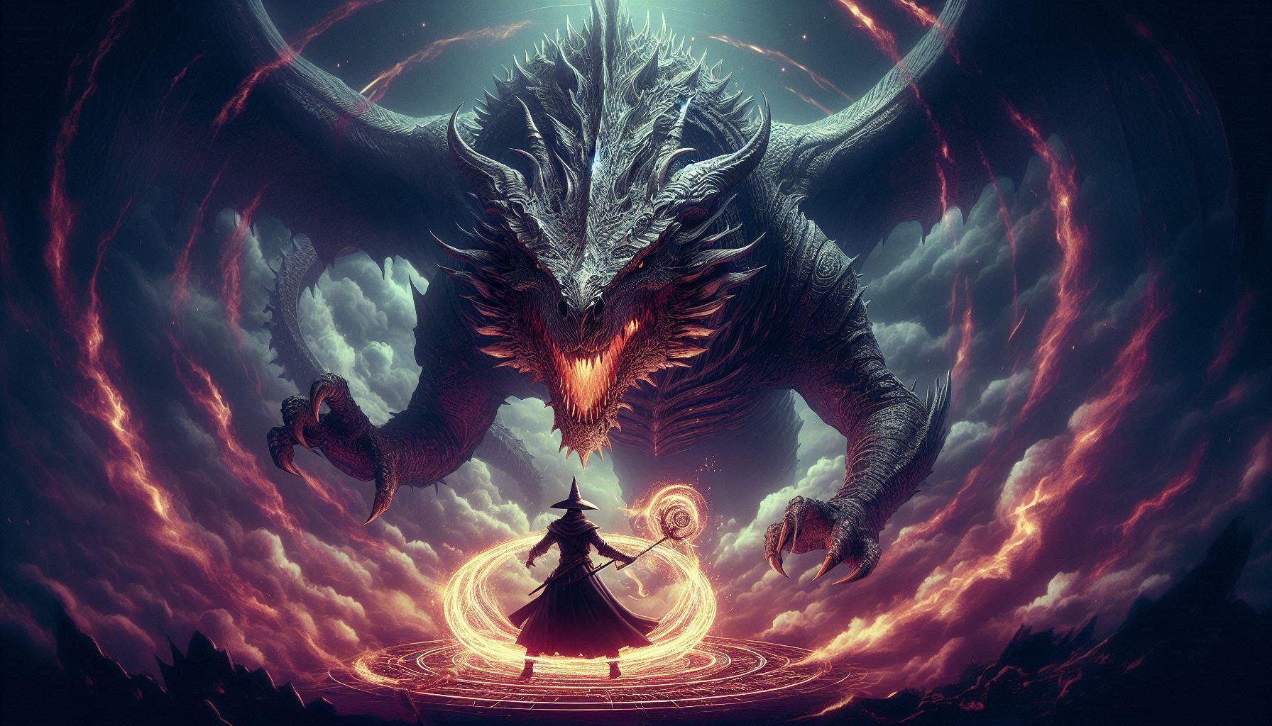 巨大なドラゴンと対決する騎士&魔法使いです!・・どちらの戦いもぶっちゃけ勝ち目が薄そうです😰💦。