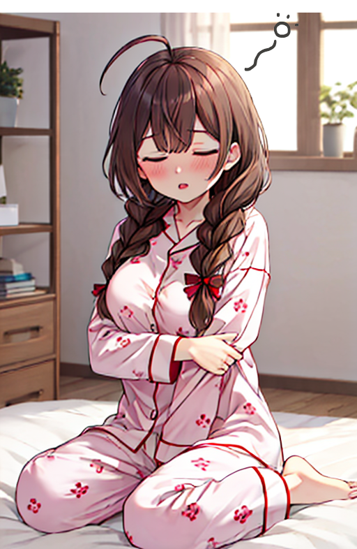 パジャマ姿の練習で作ったもの。神州丸さんはピンクの花柄パジャマと予想。