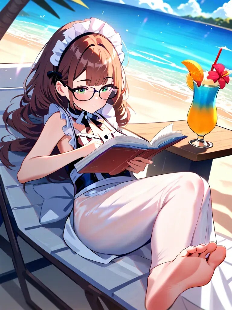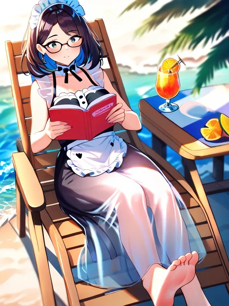 お仕事の合間に許される休憩を有効に活用して、せめてものバカンス気分に浸るメイドさんたちでした。