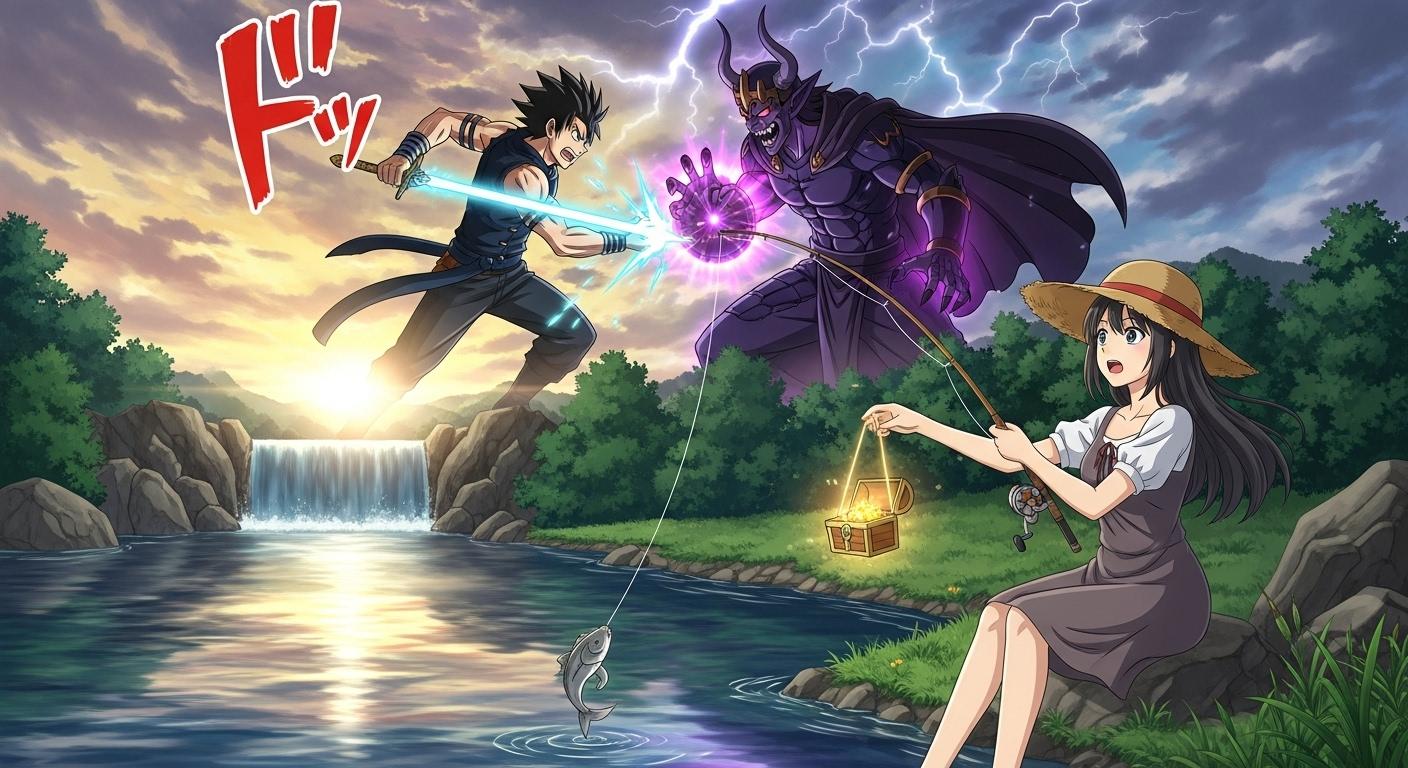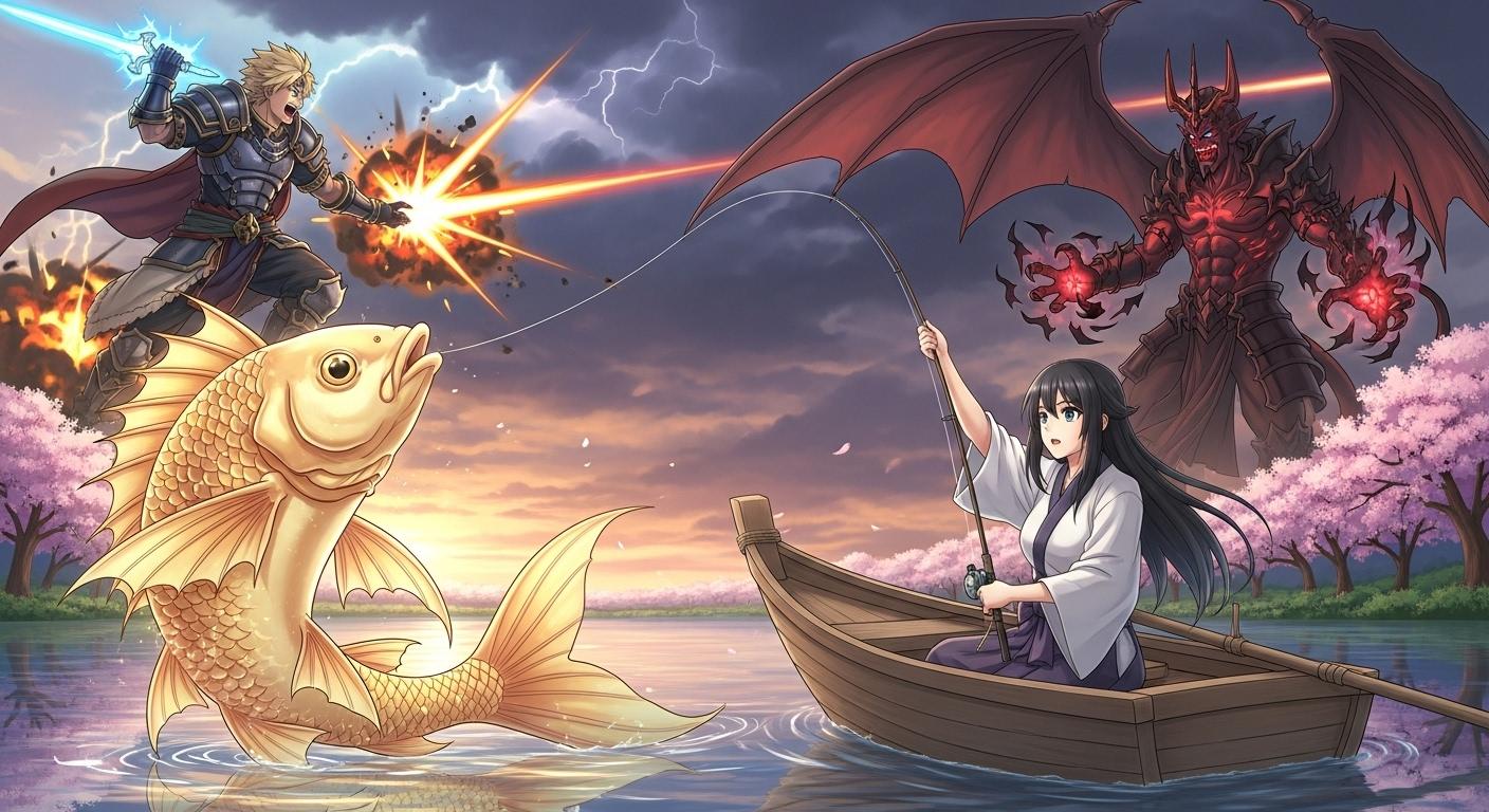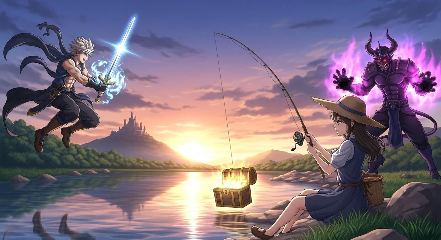 勇者と魔王が戦ってる横で釣りでは、宝箱がよく釣れるようです