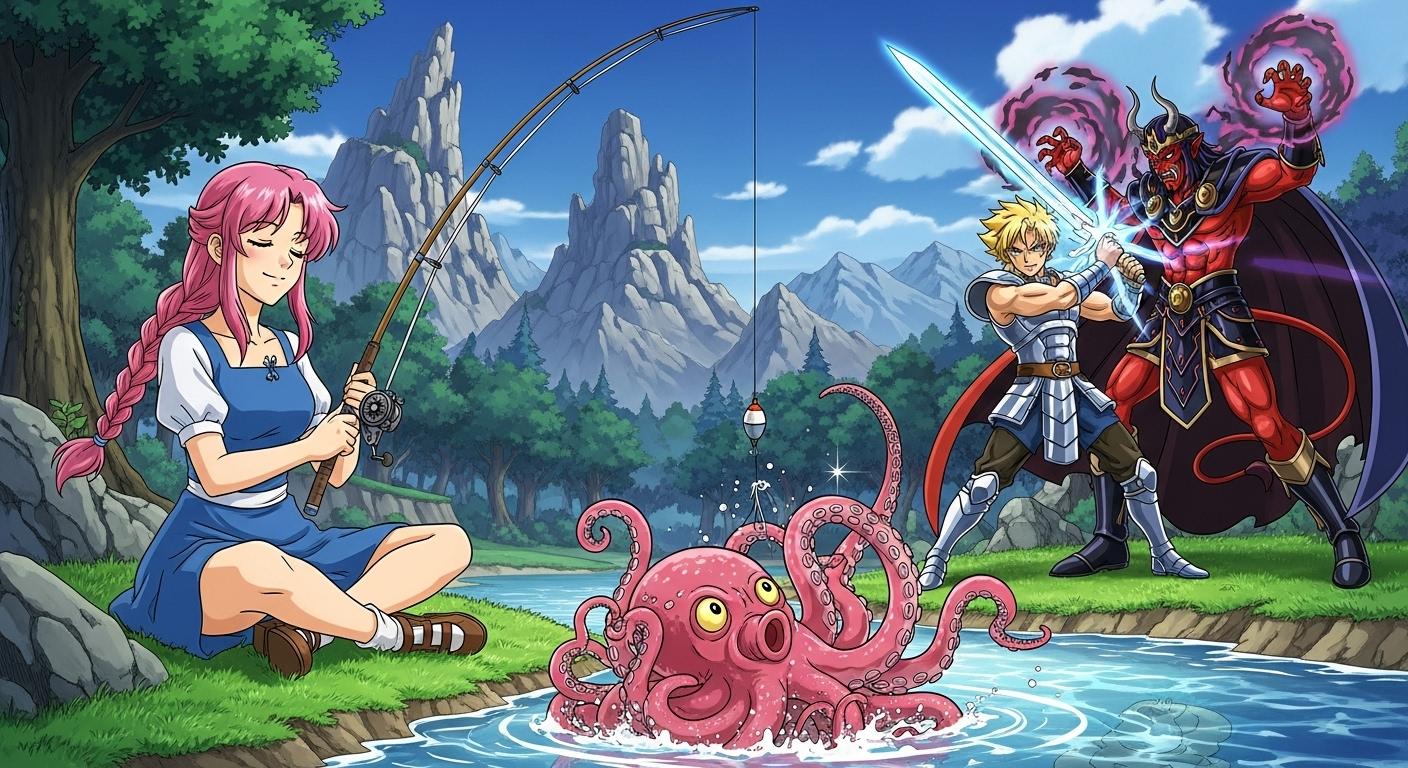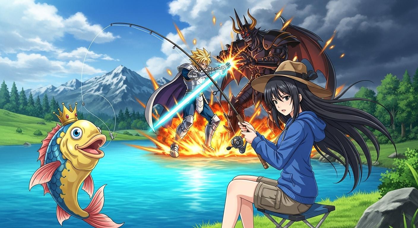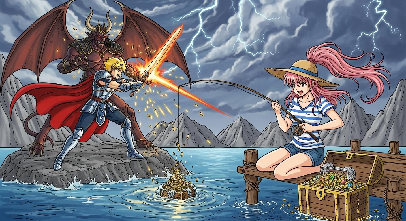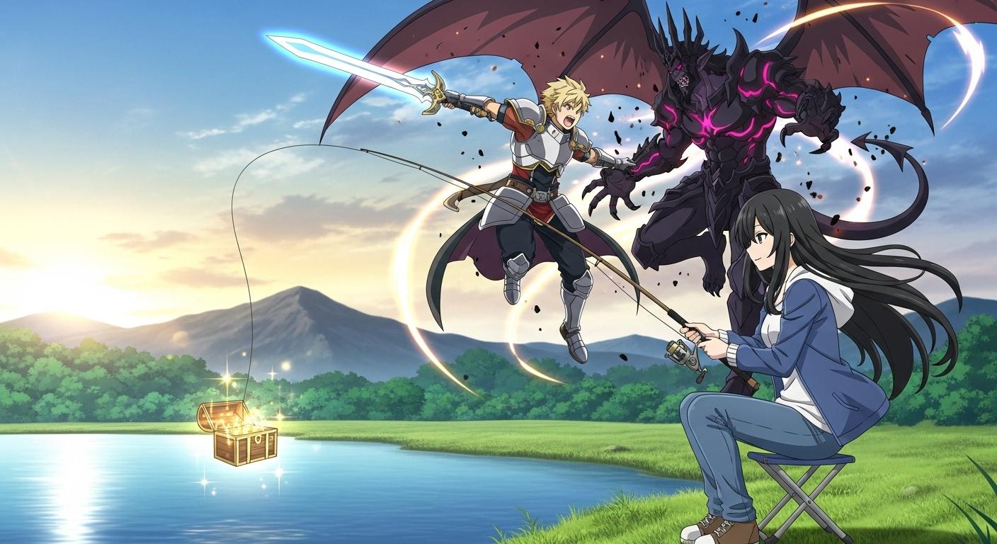 勇者と魔王が戦ってる横で釣りでは、宝箱がよく釣れるようです