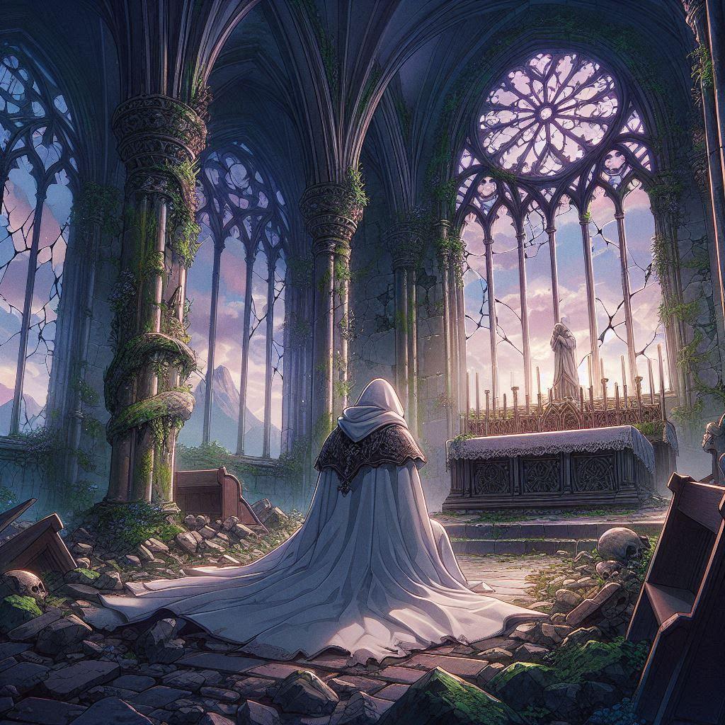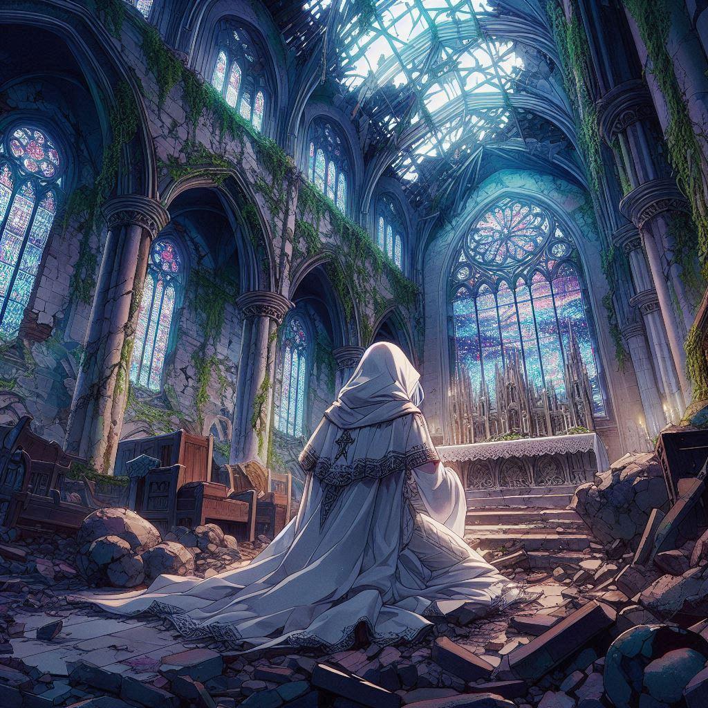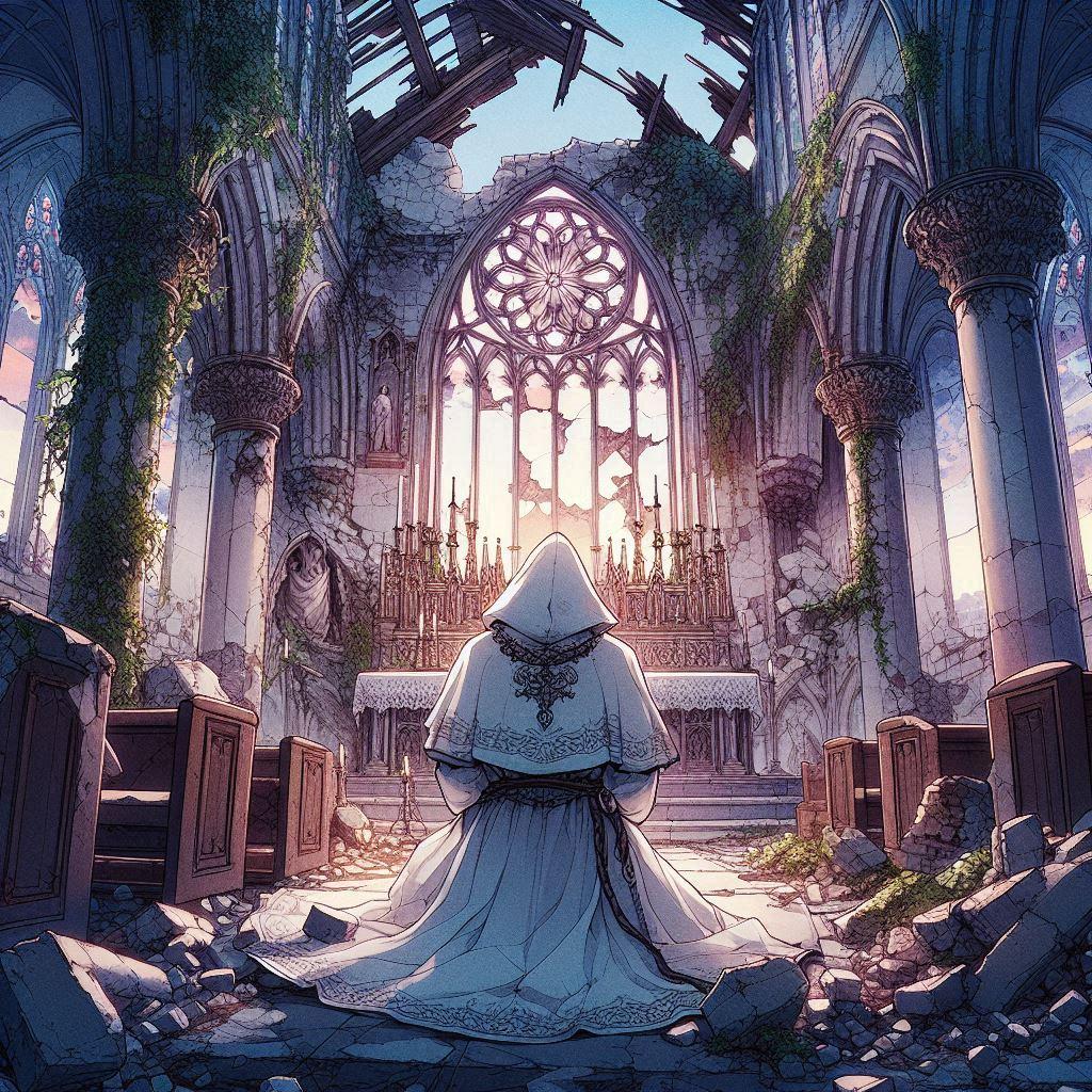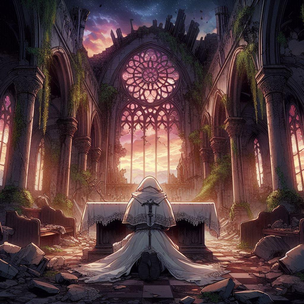祭壇の前に跪き、彼は手を合わせた。