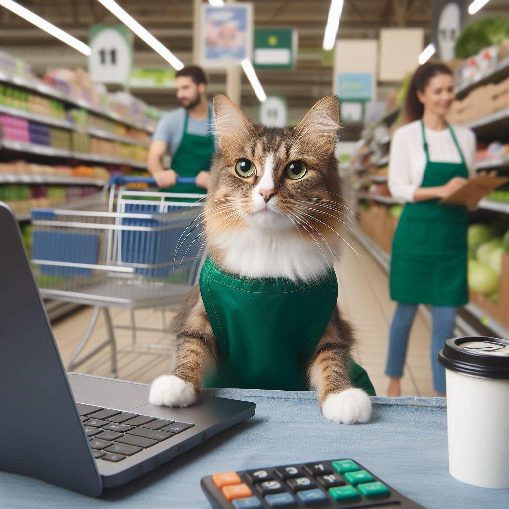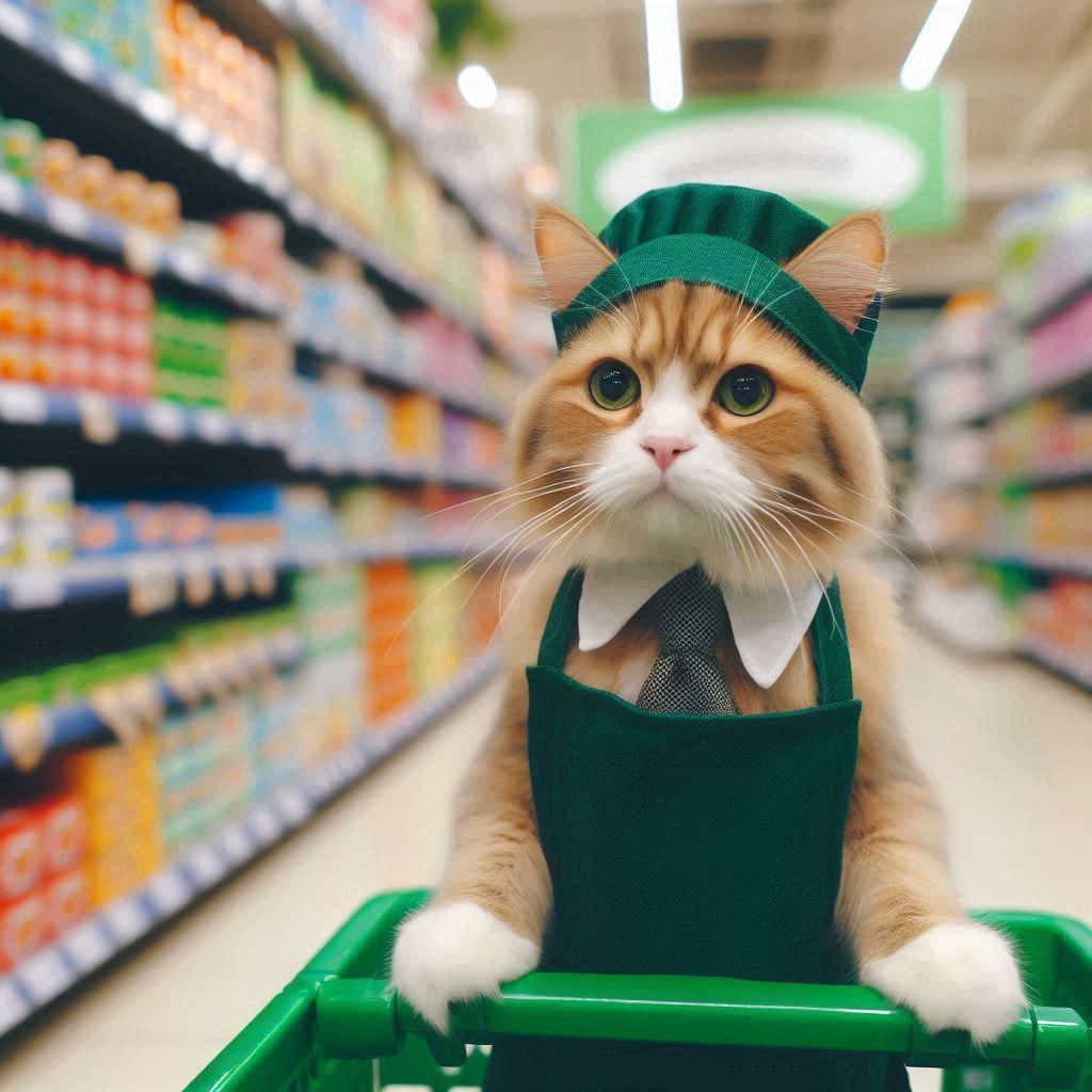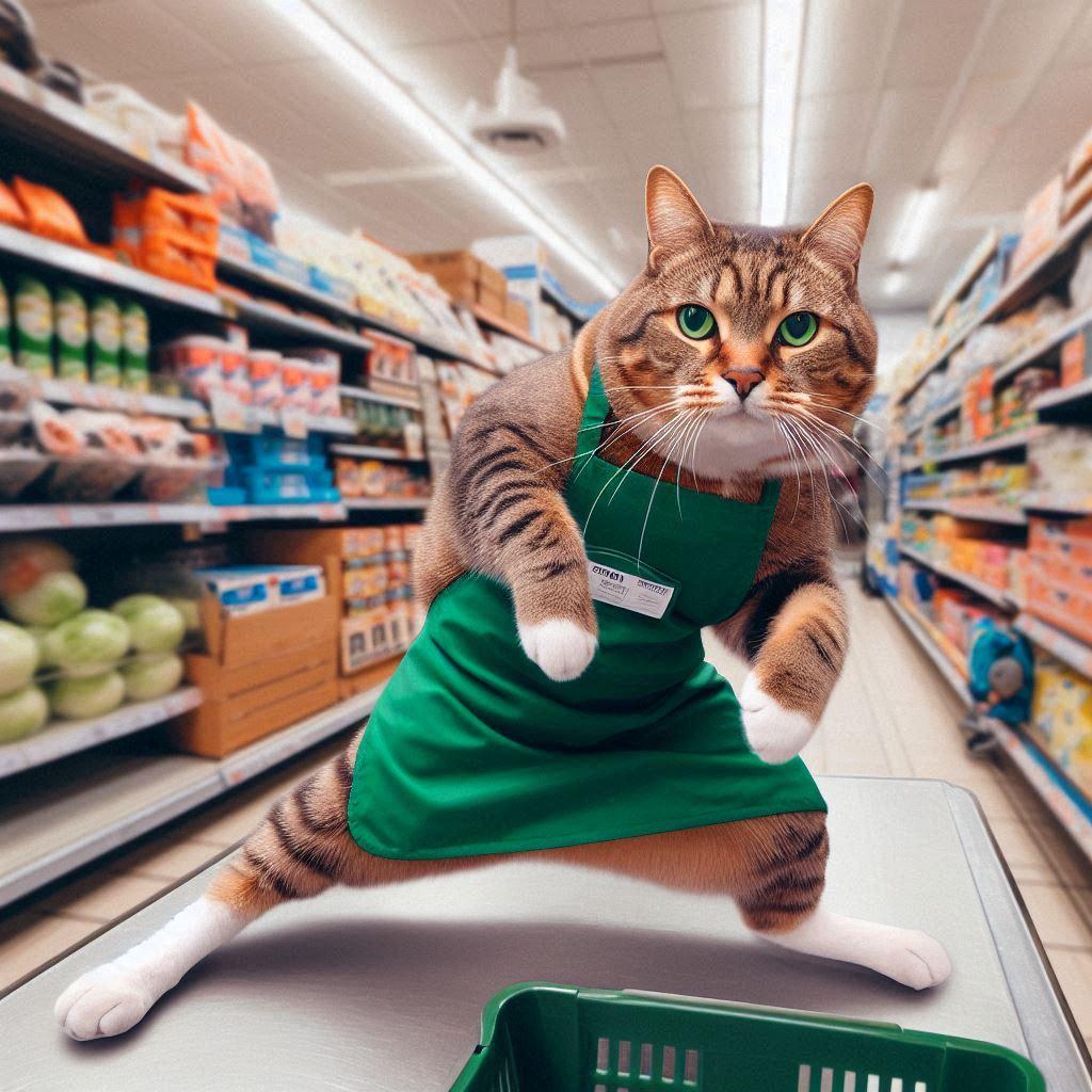 スーパーで働く猫