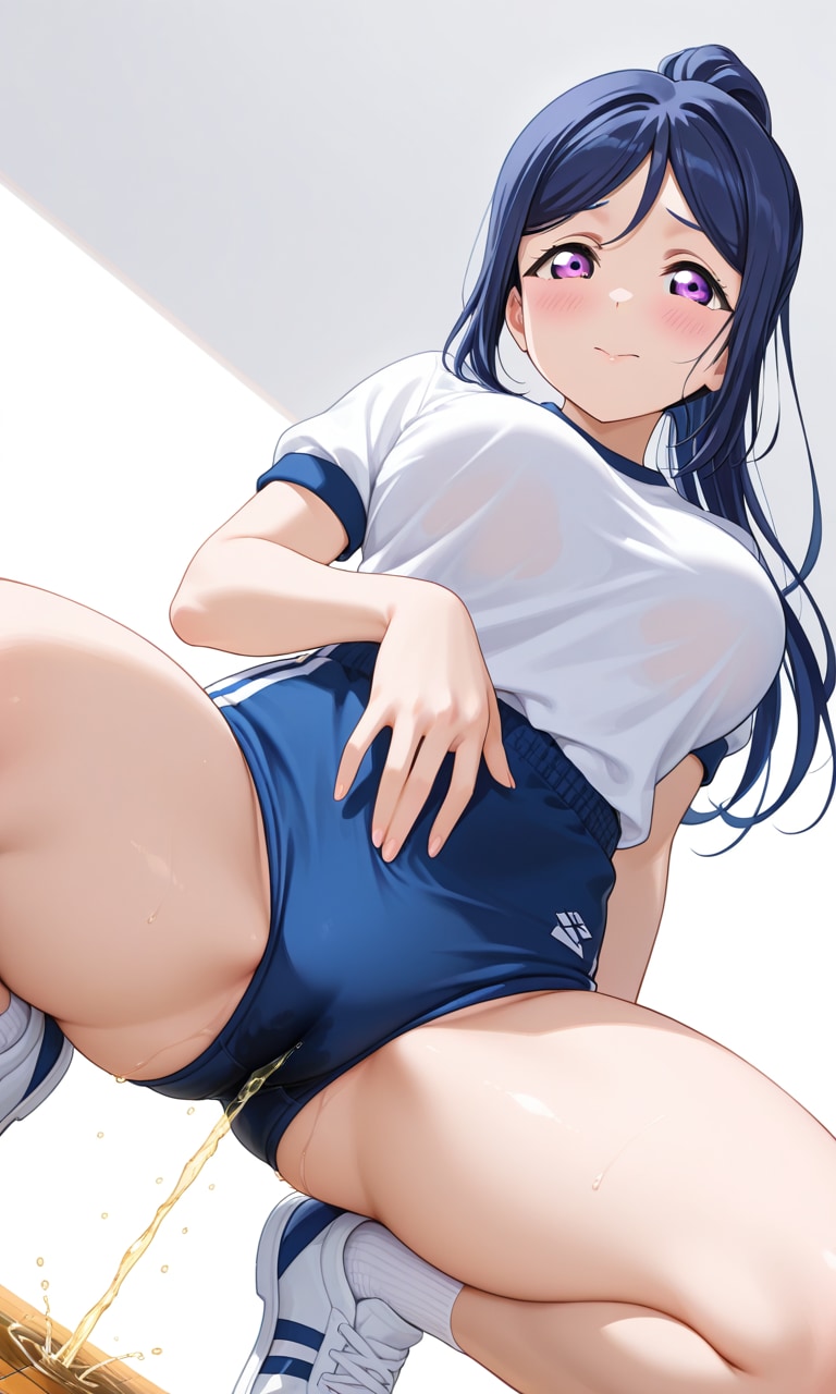 『ラ〇ライブ!サ〇シャイン!!』から「松◯果南」のブルマお漏らしをAI画像生成してみました