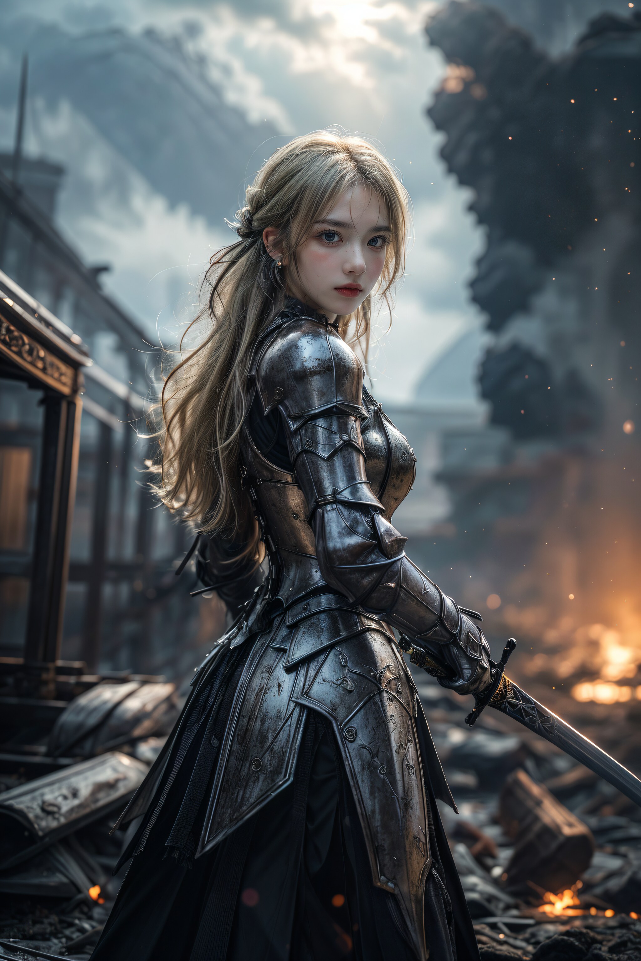 アーマーの方のLoRAだけで試してみましたが、もう一つのLoRAも併用しないと良いポーズは出ないのかもw