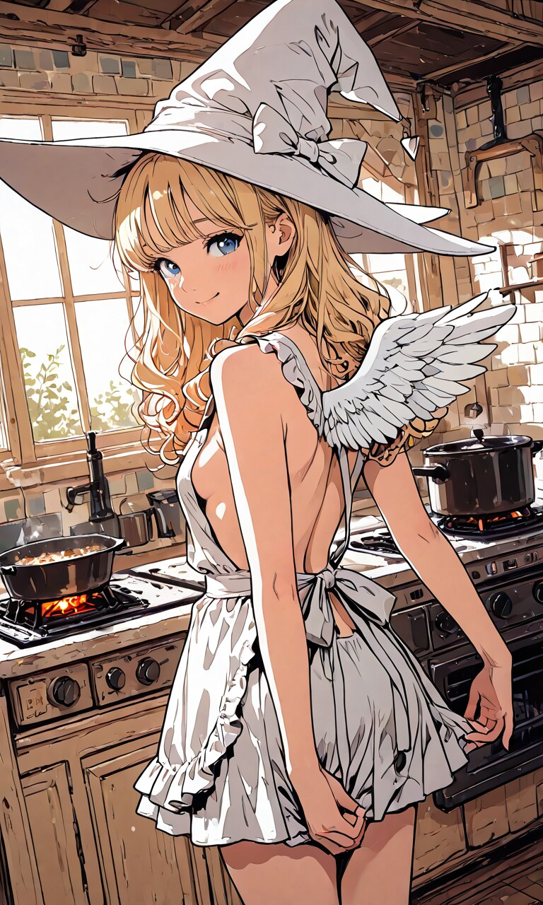翼を出すために背中が開いてるので、裸エプロンに見えますが、ちゃんとスカート履いてるでしょ!