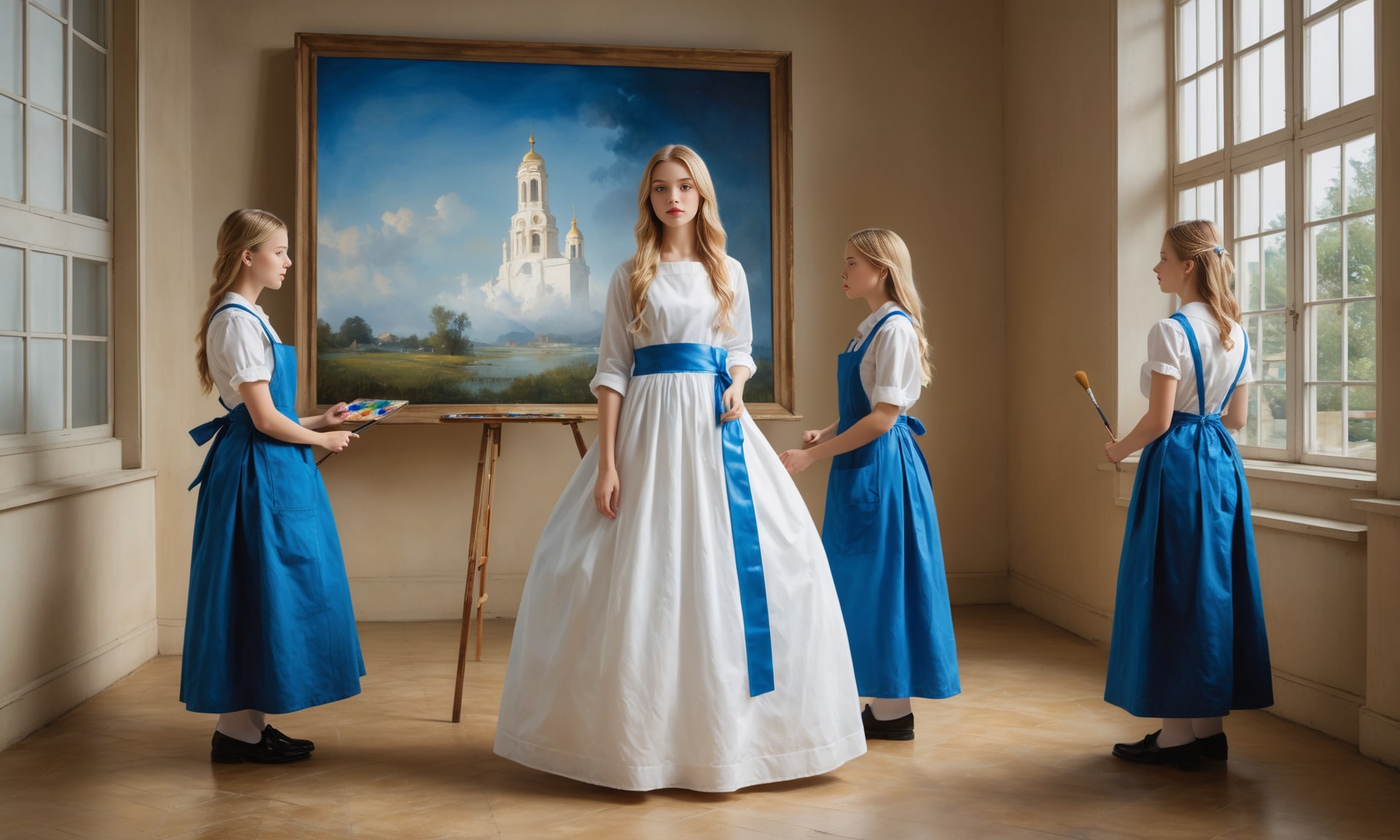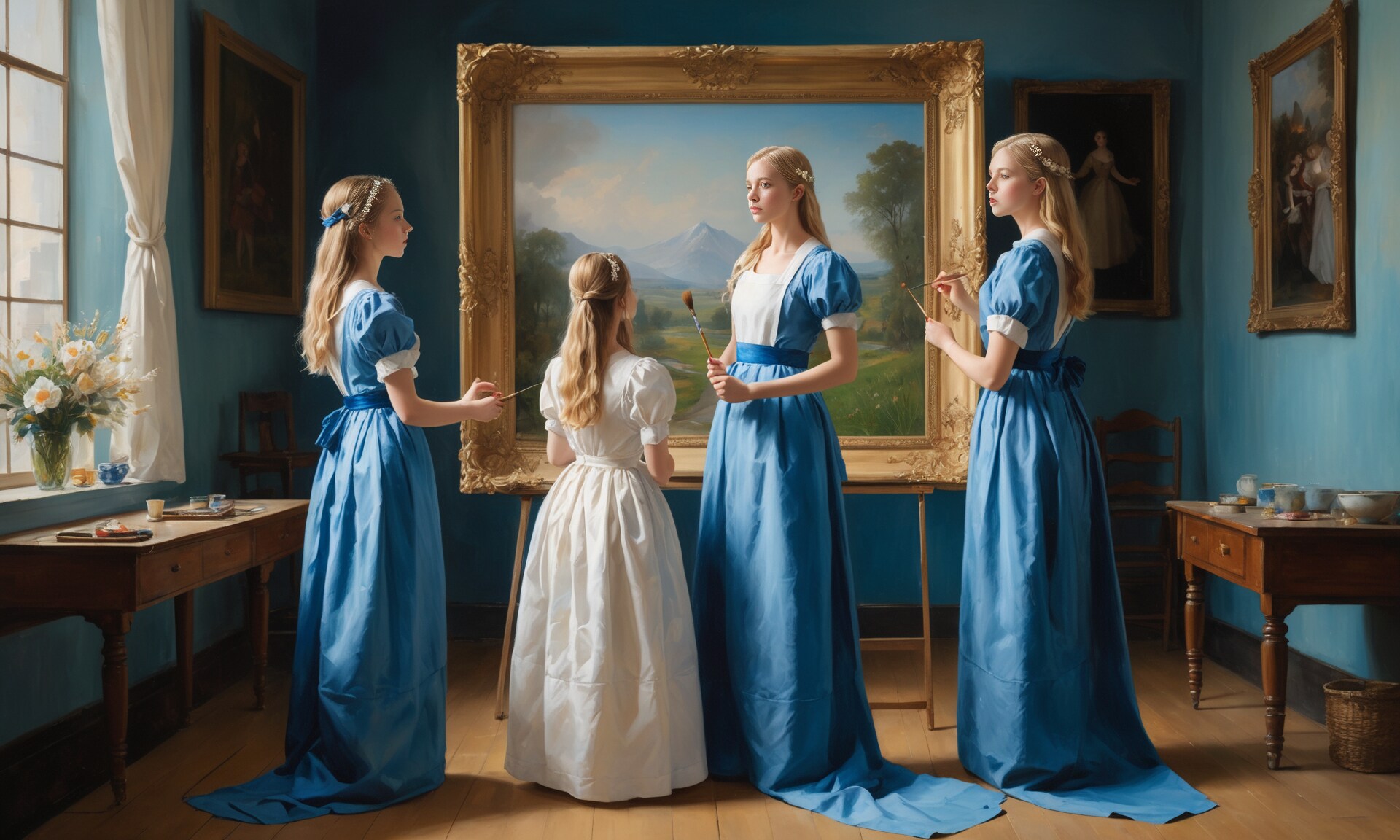 Meninasは、女官たちを意味していますが、プロンプトはメイドを入れています。