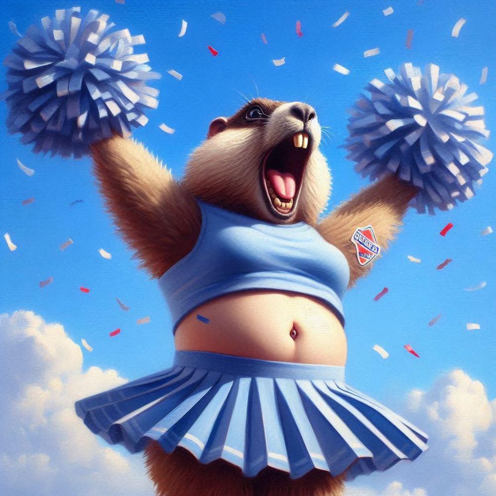 油絵アニメ風、ジャンプ応援チアリーダーマーモット