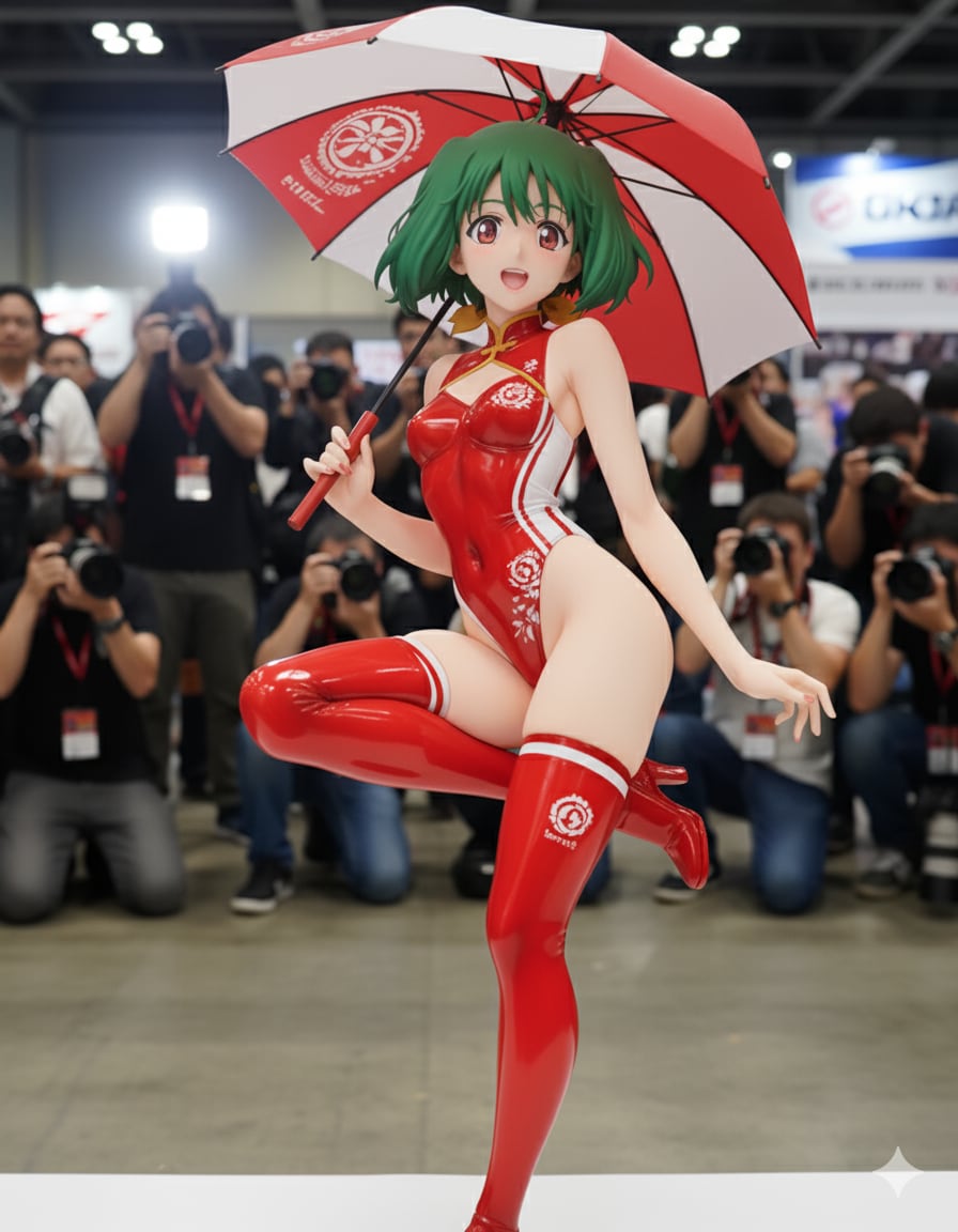 内容は、以前投稿したレースクイーンなランカちゃん(8枚目)を素材に、PixAIのワンタップ画像フィギュア化機能でベースであるフィギュア(5枚目)を作り、後は後ろ姿の”尻アングル”wを作ったり、背景で遊んだりしました(1枚目~4枚目)。