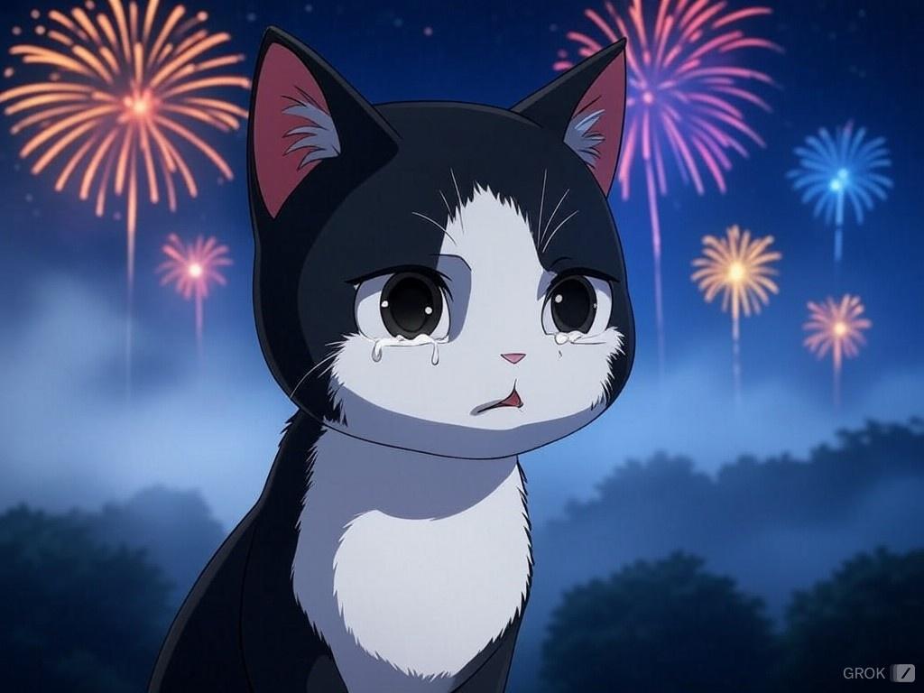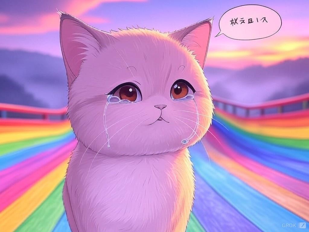 猫は涙を流して走り去った。