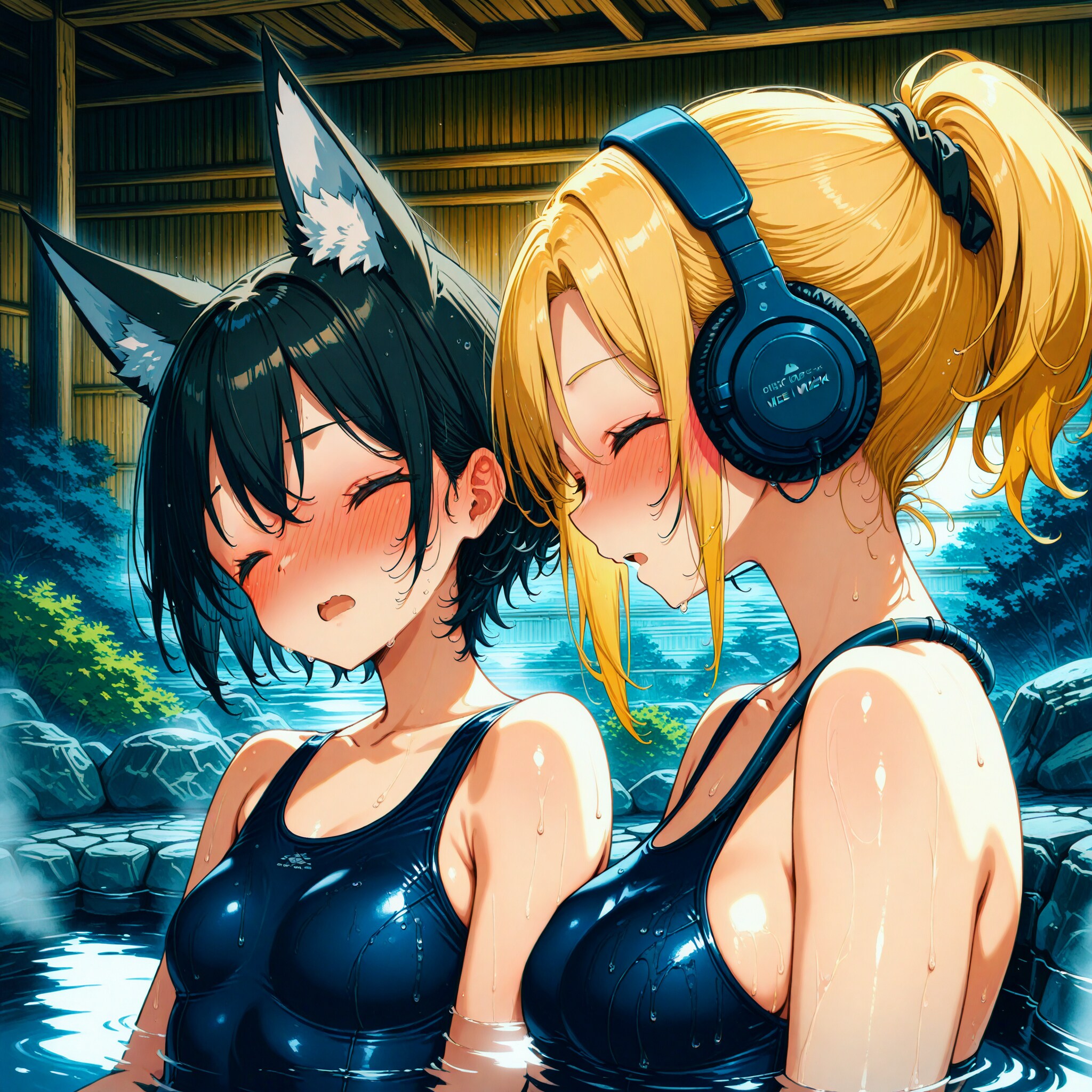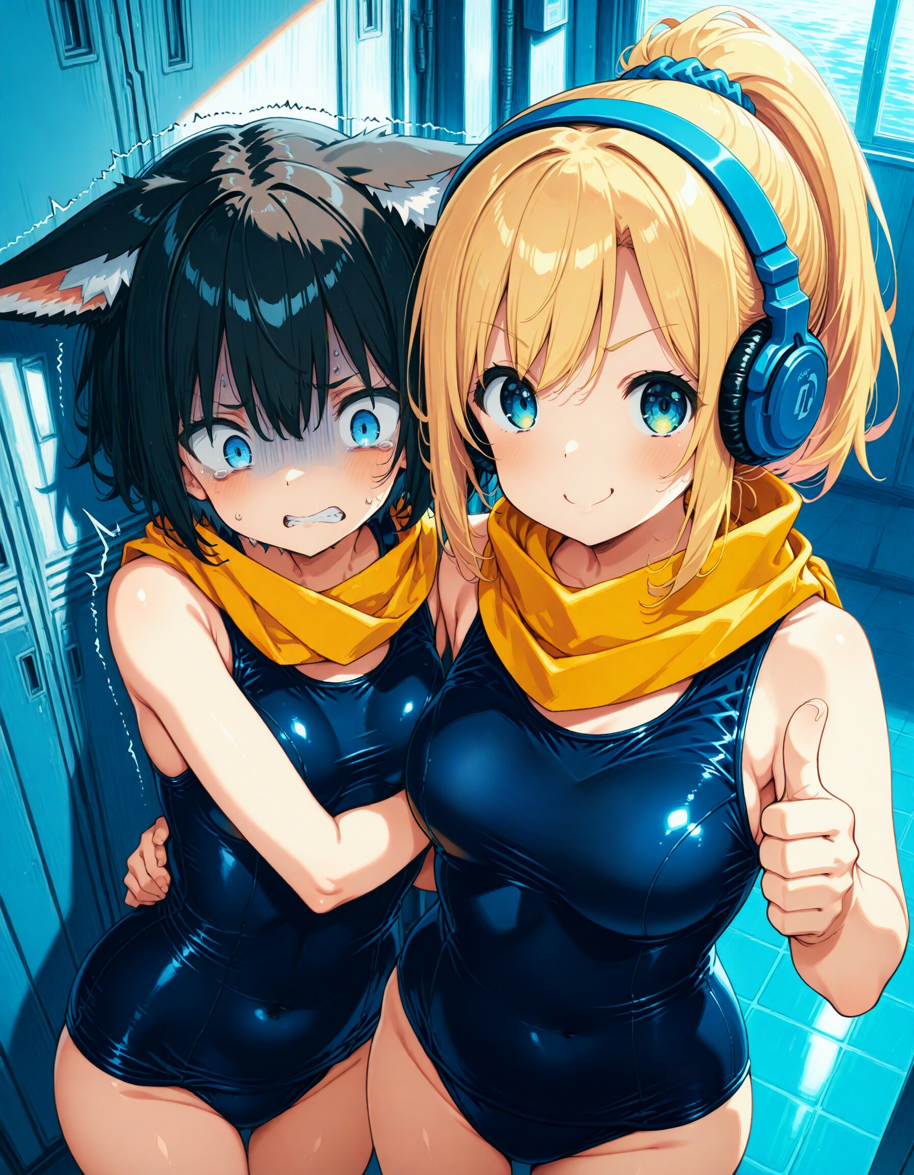 マーガリン画伯さんのスク水ヘッドホンマフラーポニテちゃん