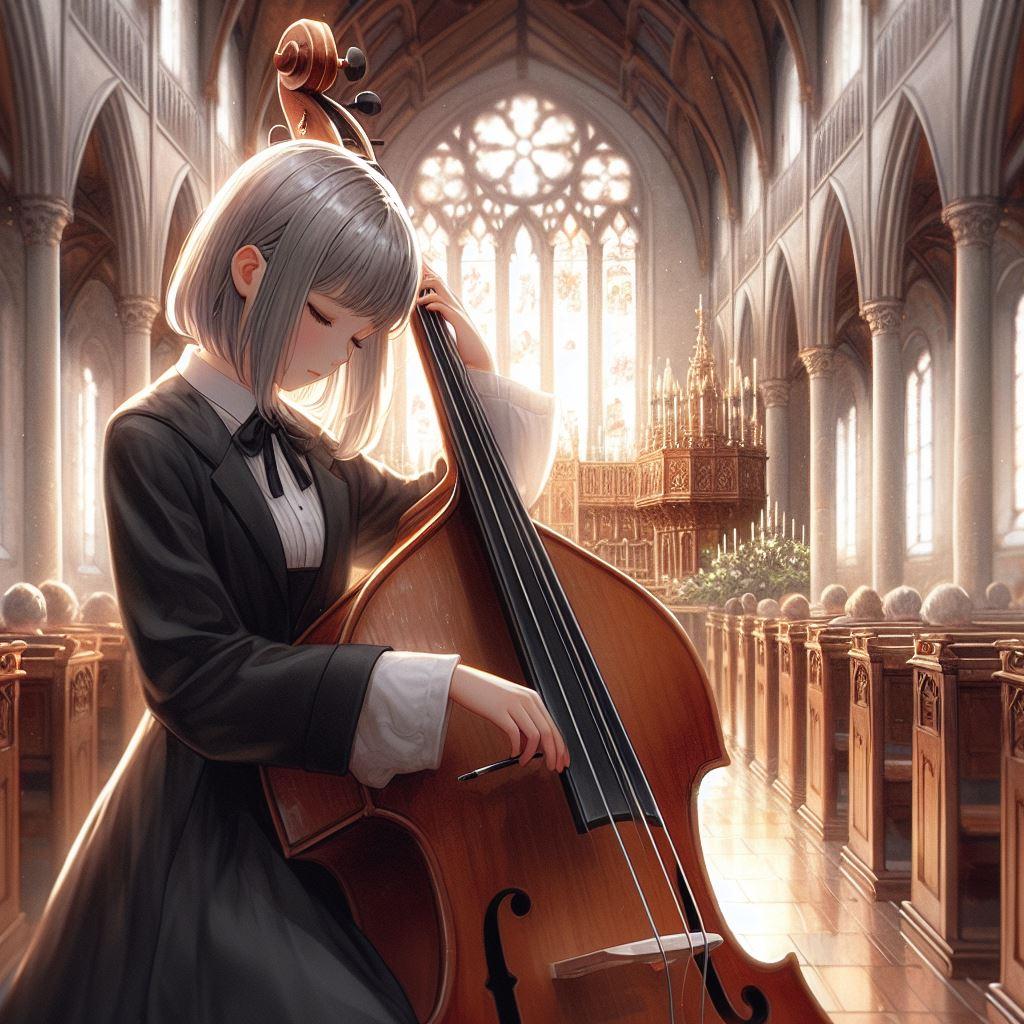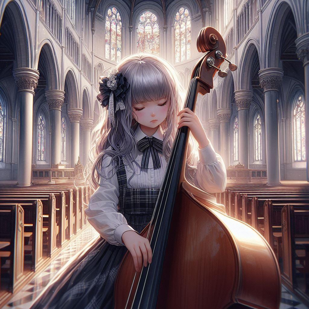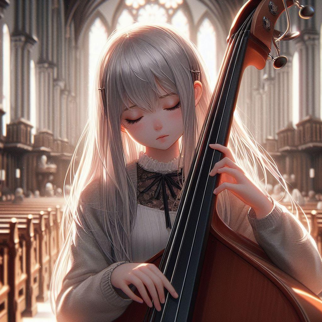 銀髪キャラは、清楚な雰囲気が似合うなーと思ったので、思いっ切り静謐な雰囲気の中、ベースを演奏してもらいました。
