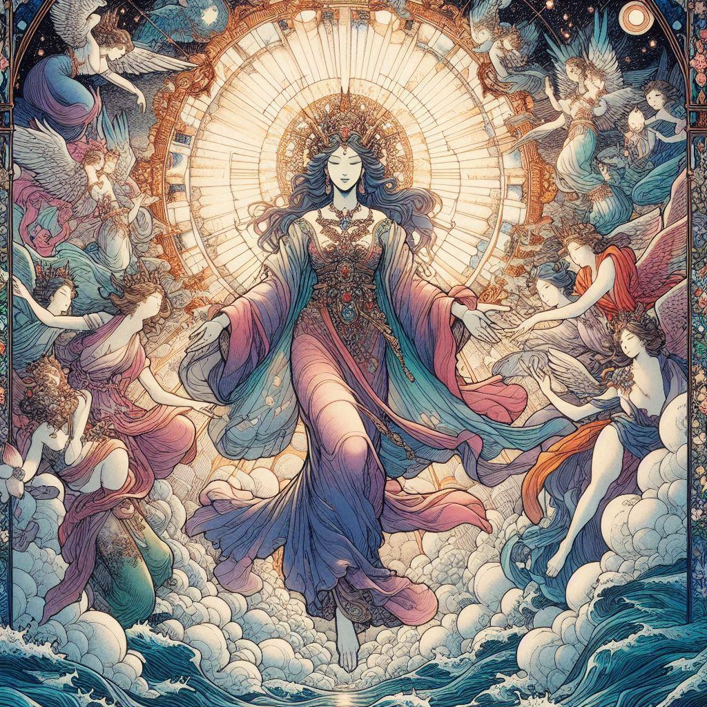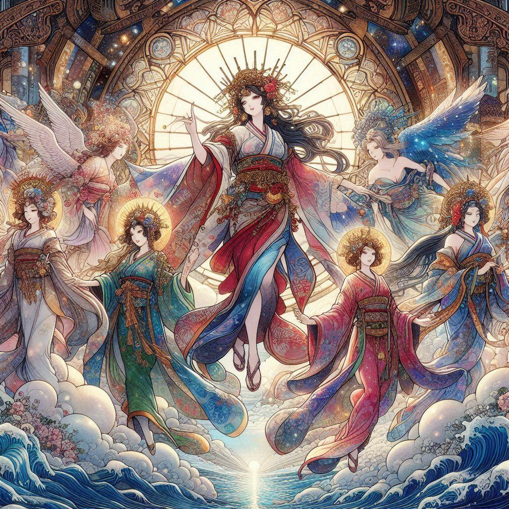 日本の女神様達を、西洋の宗教画風にAIちゃんに仕上げてい頂きました。