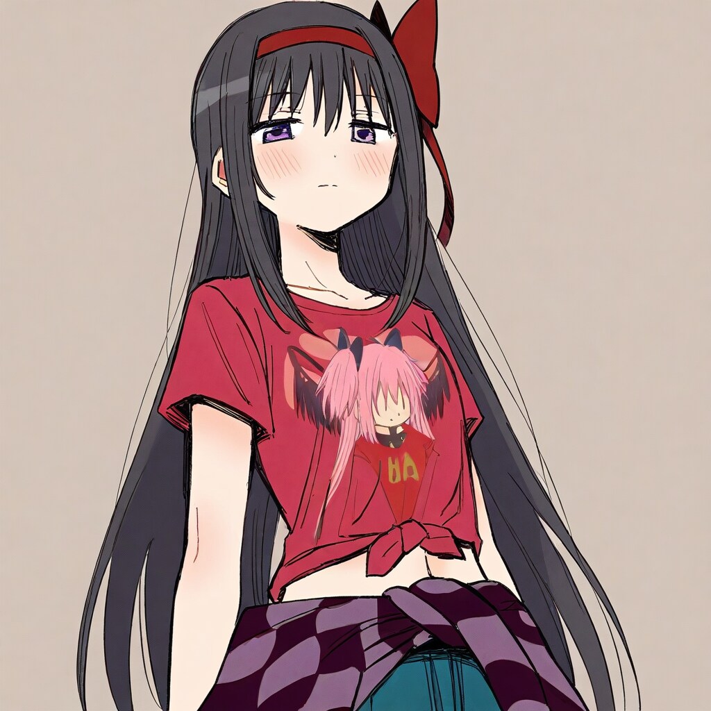 自分とまどかをプリントしたTシャツを着ている悪魔ほむら